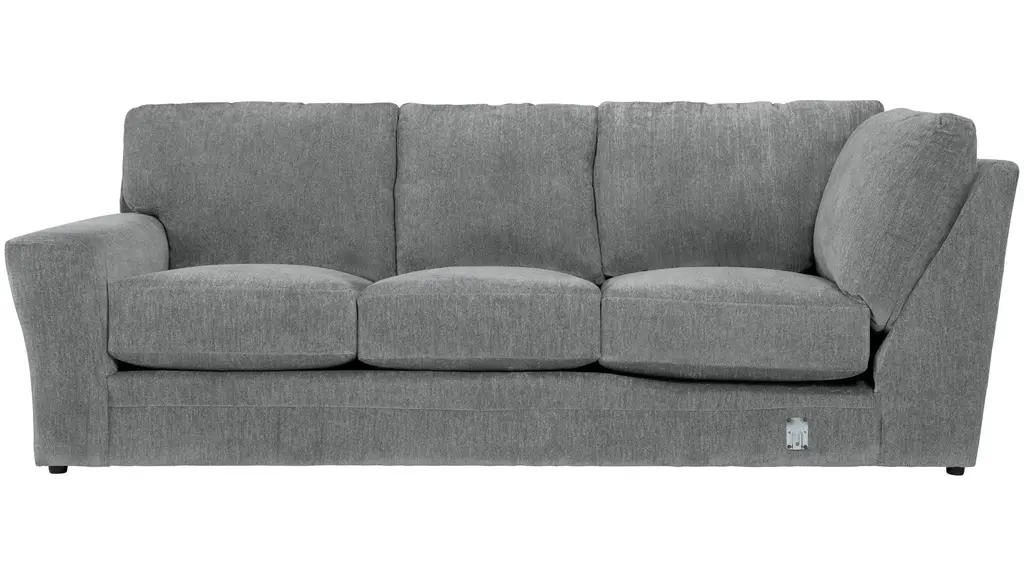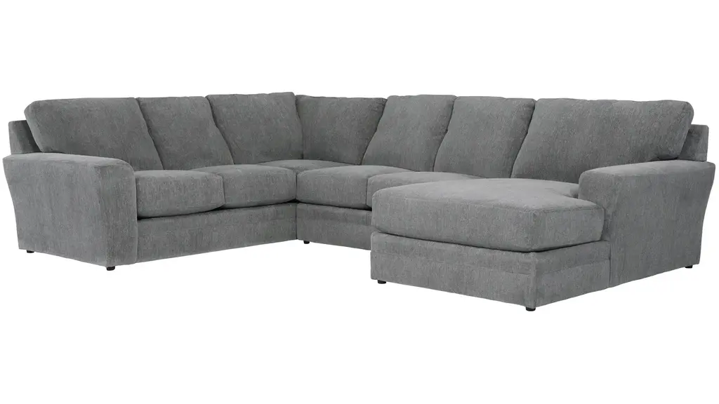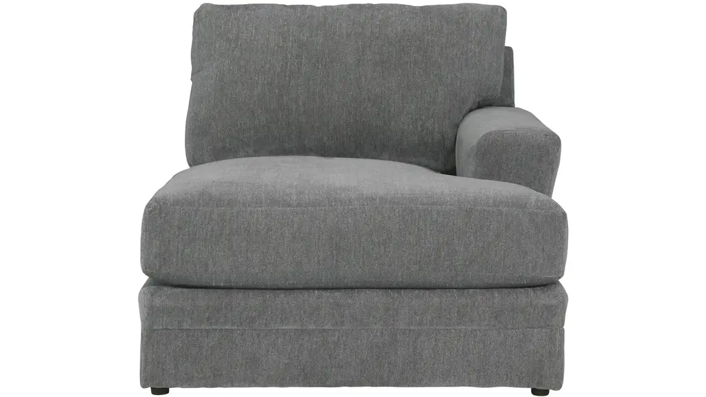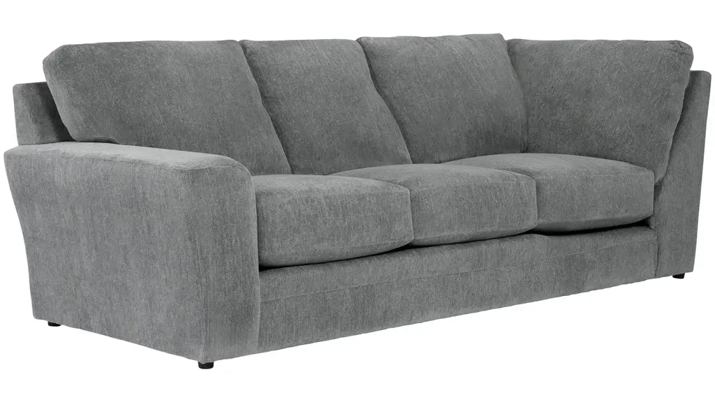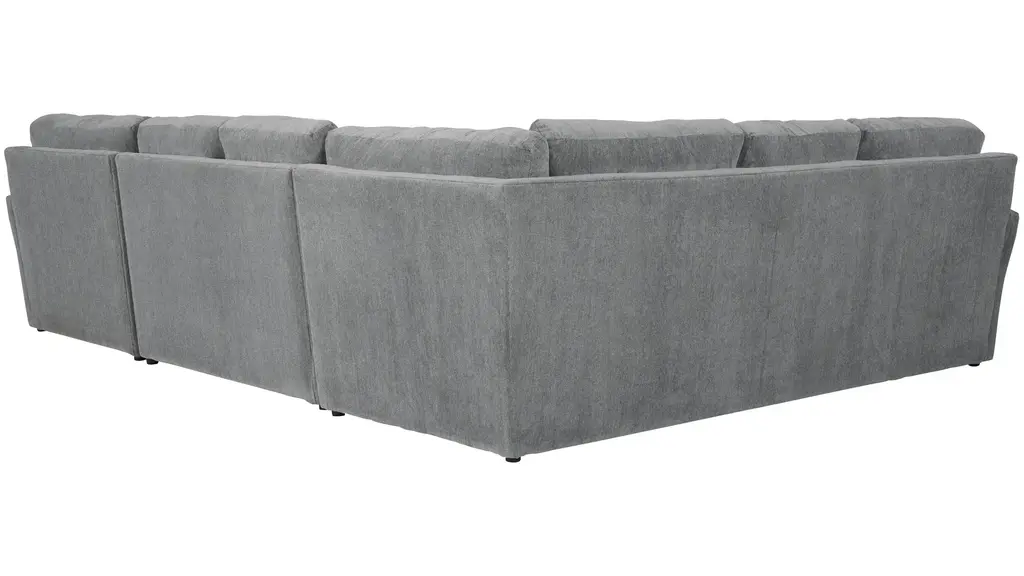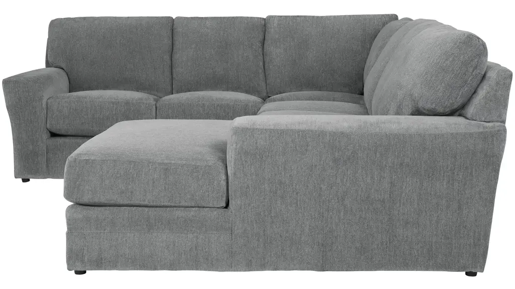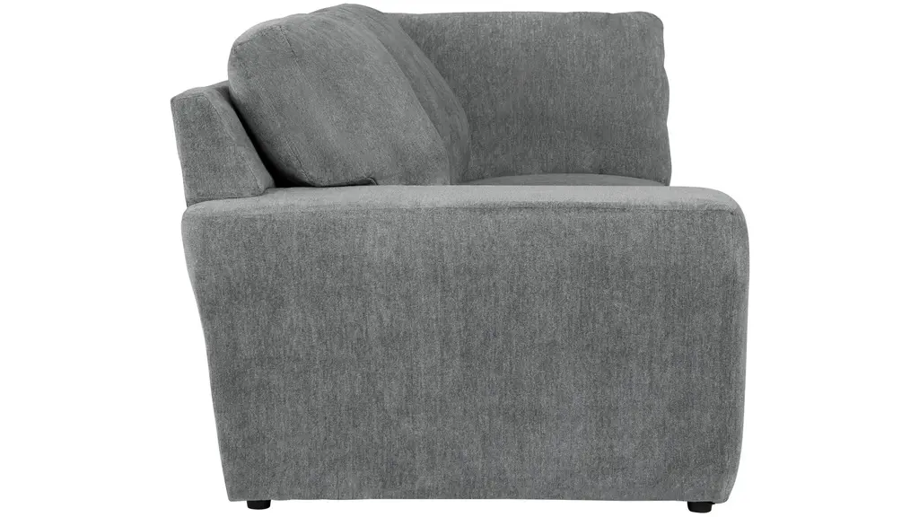 Gather, relax, and sink into comfort with the ultra-plush Kristoff 3-pc. sectional. Upholstered in a soft slate-gray fabric, it's designed for modern lounging with deep seats, supportive cushions, and a wraparound silhouette that invites everyone in. A mix of textured and patterned throw pillows in shades of light gray and ice blue adds visual interest and cozy layers. Whether you're hosting movie night or stretching out solo, this sectional turns your living space into a premium comfort zone. Includes left arm facing sofa w/return, armless loveseat, right arm facing chaise.