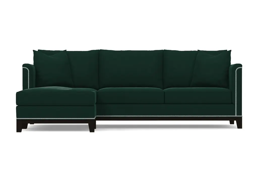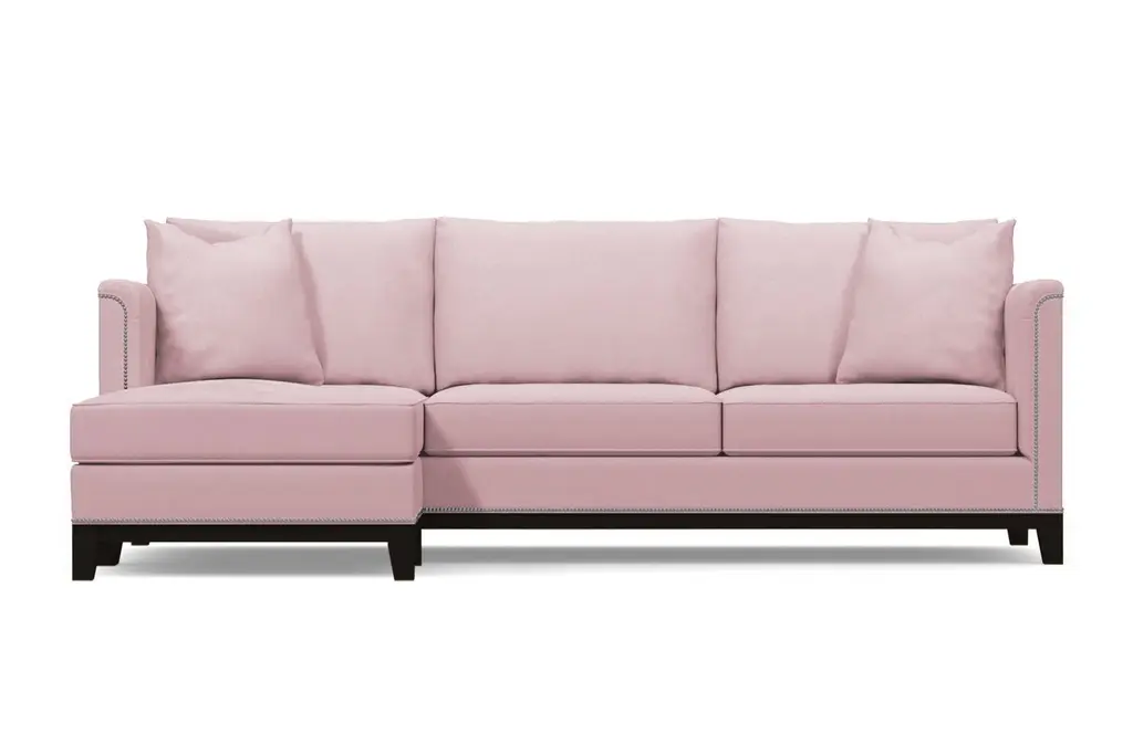 La Brea may be Spanish for "the tar", but there's nothing dark and sticky about the La Brea Studded 2-Piece Sectional. On the contrary, this is for everyone who wants to add elegance to their home that they've never experienced. We have framed each La Brea sectional with silver nailheads straight out of the old world. Originally a way to secure upholstery, this style adds the allure you've been seeking. Add in the modern shabby chic cushions, curved armrests and deep seats, and you have something that marries exquisiteness from all ages. Apt2B makes it easy to order a nailhead sectional with chaise that will class up any home. Just select your fabric color, leg finish and configuration below, and we will get to work building your sectional right here in the U.S. We use the finest hypoallergenic fabrics, solid wood and supportive high-density foam for maximum comfort. Our eco-friendly construction has a limited lifetime warranty - so it should last about as long as the tar pits do. We are dedicated to offering world-class service, so if you need fabric swatches, are having trouble ordering or want to know more about the La Brea collection, just let us know!