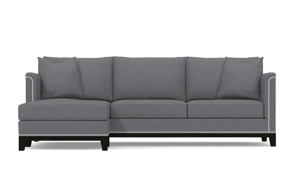 La Brea may be Spanish for "the tar", but there's nothing dark and sticky about the La Brea Studded 2-Piece Sectional. On the contrary, this is for everyone who wants to add elegance to their home that they've never experienced. We have framed each La Brea sectional with silver nailheads straight out of the old world. Originally a way to secure upholstery, this style adds the allure you've been seeking. Add in the modern shabby chic cushions, curved armrests and deep seats, and you have something that marries exquisiteness from all ages. Apt2B makes it easy to order a nailhead sectional with chaise that will class up any home. Just select your fabric color, leg finish and configuration below, and we will get to work building your sectional right here in the U.S. We use the finest hypoallergenic fabrics, solid wood and supportive high-density foam for maximum comfort. Our eco-friendly construction has a limited lifetime warranty - so it should last about as long as the tar pits do. We are dedicated to offering world-class service, so if you need fabric swatches, are having trouble ordering or want to know more about the La Brea collection, just let us know!