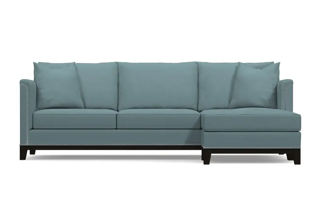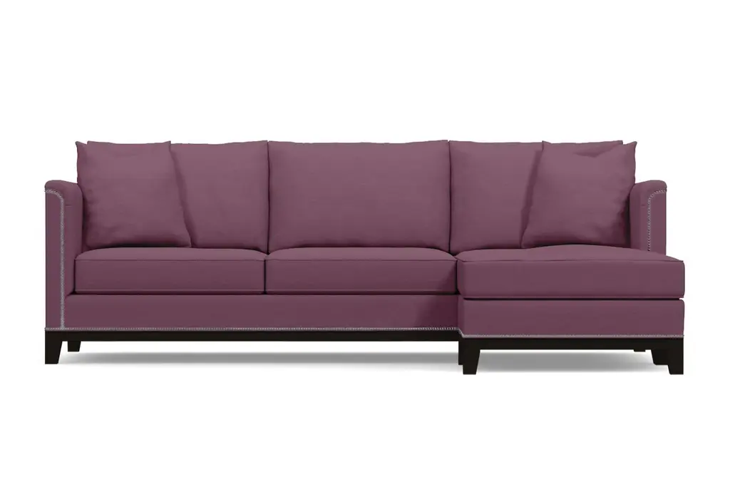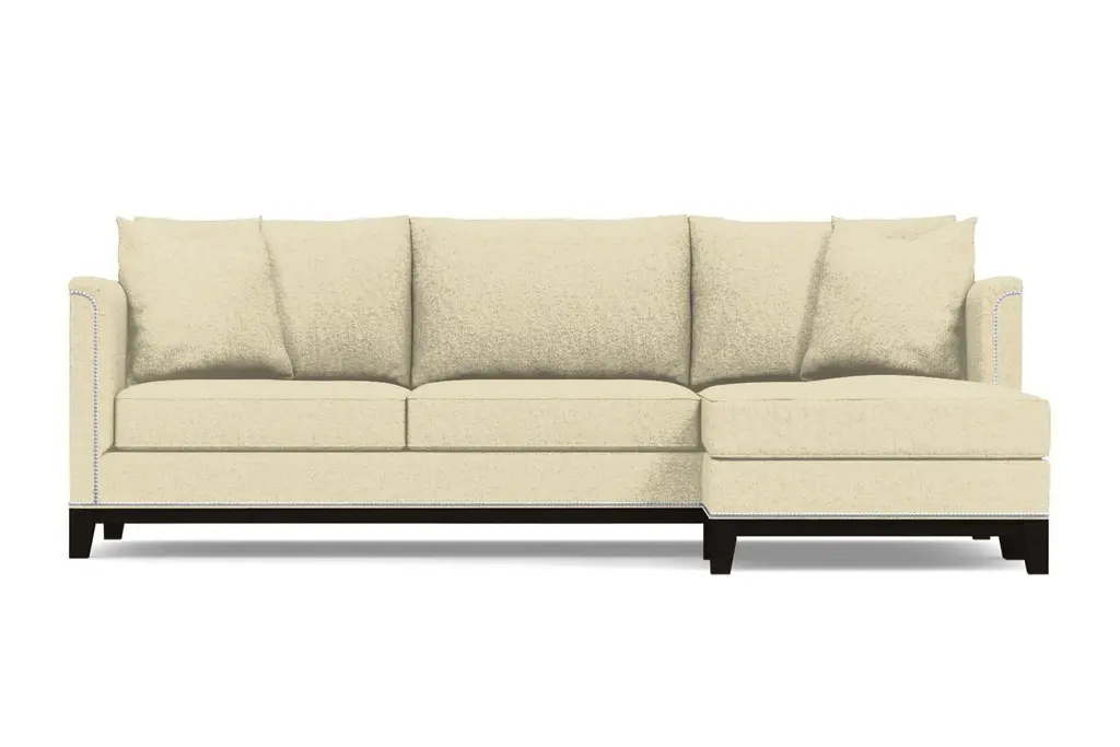 La Brea may be Spanish for "the tar", but there's nothing dark and sticky about the La Brea Studded 2-Piece Sectional. On the contrary, this is for everyone who wants to add elegance to their home that they've never experienced. We have framed each La Brea sectional with silver nailheads straight out of the old world. Originally a way to secure upholstery, this style adds the allure you've been seeking. Add in the modern shabby chic cushions, curved armrests and deep seats, and you have something that marries exquisiteness from all ages. Apt2B makes it easy to order a nailhead sectional with chaise that will class up any home. Just select your fabric color, leg finish and configuration below, and we will get to work building your sectional right here in the U.S. We use the finest hypoallergenic fabrics, solid wood and supportive high-density foam for maximum comfort. Our eco-friendly construction has a limited lifetime warranty - so it should last about as long as the tar pits do. We are dedicated to offering world-class service, so if you need fabric swatches, are having trouble ordering or want to know more about the La Brea collection, just let us know!