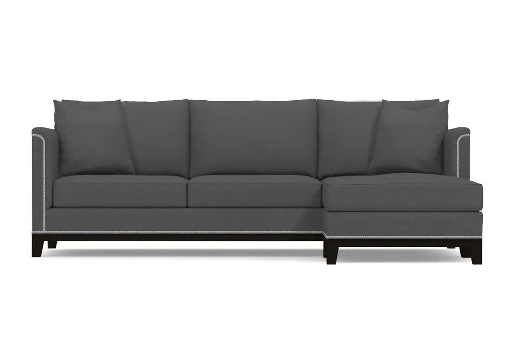 La Brea may be Spanish for "the tar", but there's nothing dark and sticky about the La Brea Studded 2-Piece Sectional. On the contrary, this is for everyone who wants to add elegance to their home that they've never experienced. We have framed each La Brea sectional with silver nailheads straight out of the old world. Originally a way to secure upholstery, this style adds the allure you've been seeking. Add in the modern shabby chic cushions, curved armrests and deep seats, and you have something that marries exquisiteness from all ages. Apt2B makes it easy to order a nailhead sectional with chaise that will class up any home. Just select your fabric color, leg finish and configuration below, and we will get to work building your sectional right here in the U.S. We use the finest hypoallergenic fabrics, solid wood and supportive high-density foam for maximum comfort. Our eco-friendly construction has a limited lifetime warranty - so it should last about as long as the tar pits do. We are dedicated to offering world-class service, so if you need fabric swatches, are having trouble ordering or want to know more about the La Brea collection, just let us know!