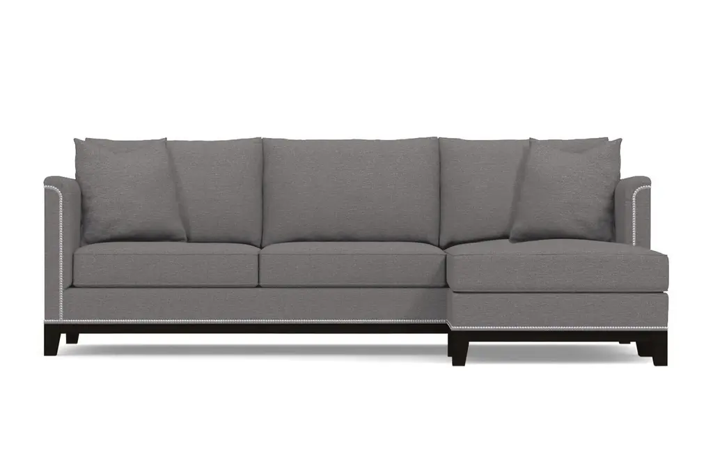 La Brea may be Spanish for "the tar", but there's nothing dark and sticky about the La Brea Studded 2-Piece Sectional. On the contrary, this is for everyone who wants to add elegance to their home that they've never experienced. We have framed each La Brea sectional with silver nailheads straight out of the old world. Originally a way to secure upholstery, this style adds the allure you've been seeking. Add in the modern shabby chic cushions, curved armrests and deep seats, and you have something that marries exquisiteness from all ages. Apt2B makes it easy to order a nailhead sectional with chaise that will class up any home. Just select your fabric color, leg finish and configuration below, and we will get to work building your sectional right here in the U.S. We use the finest hypoallergenic fabrics, solid wood and supportive high-density foam for maximum comfort. Our eco-friendly construction has a limited lifetime warranty - so it should last about as long as the tar pits do. We are dedicated to offering world-class service, so if you need fabric swatches, are having trouble ordering or want to know more about the La Brea collection, just let us know!