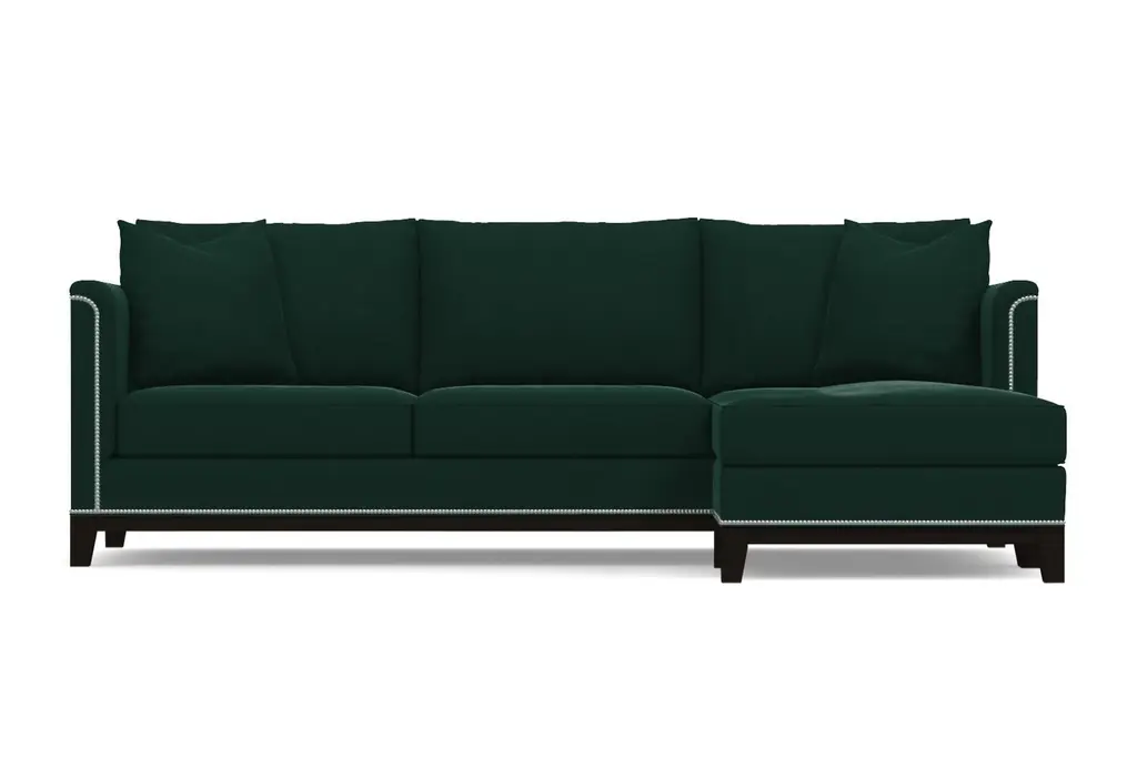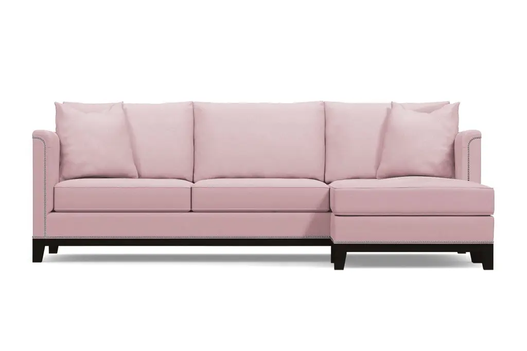 La Brea may be Spanish for "the tar", but there's nothing dark and sticky about the La Brea Studded 2-Piece Sectional. On the contrary, this is for everyone who wants to add elegance to their home that they've never experienced. We have framed each La Brea sectional with silver nailheads straight out of the old world. Originally a way to secure upholstery, this style adds the allure you've been seeking. Add in the modern shabby chic cushions, curved armrests and deep seats, and you have something that marries exquisiteness from all ages. Apt2B makes it easy to order a nailhead sectional with chaise that will class up any home. Just select your fabric color, leg finish and configuration below, and we will get to work building your sectional right here in the U.S. We use the finest hypoallergenic fabrics, solid wood and supportive high-density foam for maximum comfort. Our eco-friendly construction has a limited lifetime warranty - so it should last about as long as the tar pits do. We are dedicated to offering world-class service, so if you need fabric swatches, are having trouble ordering or want to know more about the La Brea collection, just let us know!