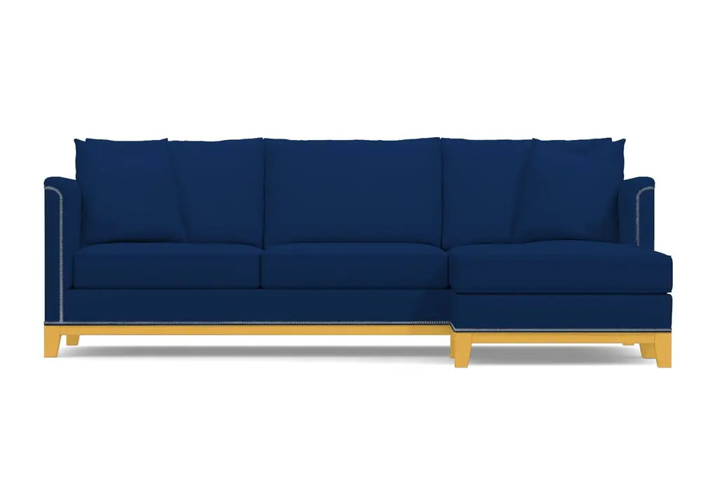 La Brea may be Spanish for "the tar", but there's nothing dark and sticky about the La Brea Studded 2-Piece Sectional. On the contrary, this is for everyone who wants to add elegance to their home that they've never experienced. We have framed each La Brea sectional with silver nailheads straight out of the old world. Originally a way to secure upholstery, this style adds the allure you've been seeking. Add in the modern shabby chic cushions, curved armrests and deep seats, and you have something that marries exquisiteness from all ages. Apt2B makes it easy to order a nailhead sectional with chaise that will class up any home. Just select your fabric color, leg finish and configuration below, and we will get to work building your sectional right here in the U.S. We use the finest hypoallergenic fabrics, solid wood and supportive high-density foam for maximum comfort. Our eco-friendly construction has a limited lifetime warranty - so it should last about as long as the tar pits do. We are dedicated to offering world-class service, so if you need fabric swatches, are having trouble ordering or want to know more about the La Brea collection, just let us know!