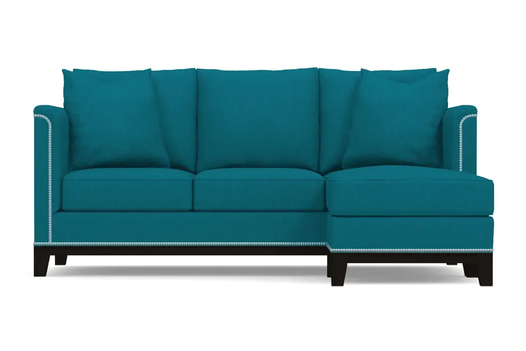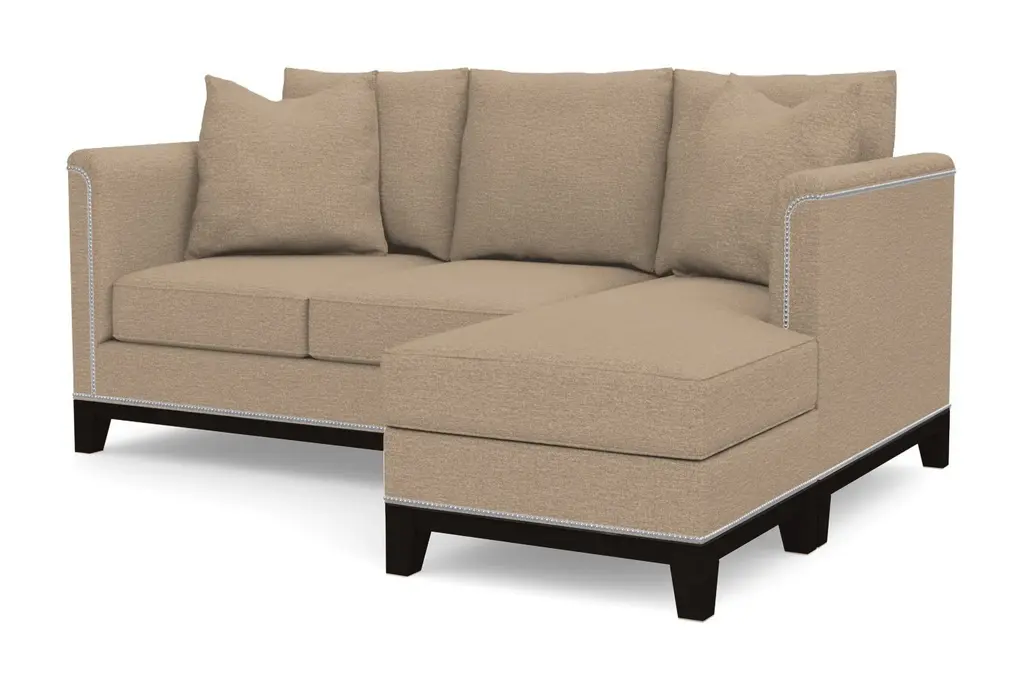 If you're looking for a versatile sofa that exudes elegance and luxurious comfort, the La Brea Reversible Chaise Sofa is for you. It looks like it belongs in a villa on the Italian countryside, but we'd much rather see it in your living room. The best part? The chaise works on either side of the couch, giving you more flexibility when designing your space. Its plush oversized pillows beckon you to relax while the visible silver nail head studs and rich espresso base brings unmatched style to your home or apartment. Available in your choice of fabrics and colors, the La Brea was made in the United States and comes with a limited lifetime warranty. The La Brea Sofa Collection combines old world style with new world modern elegance. Framed by silver nail head studs and a rich espresso wooden base, the La Brea will make your room look like a million bucks.