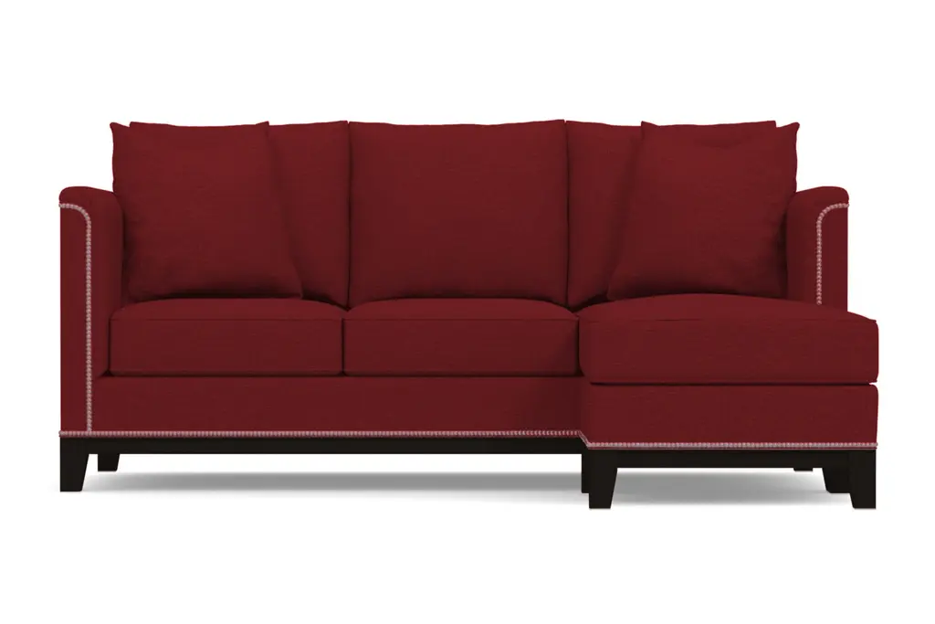 If you're looking for a versatile sofa that exudes elegance and luxurious comfort, the La Brea Reversible Chaise Sofa is for you. It looks like it belongs in a villa on the Italian countryside, but we'd much rather see it in your living room. The best part? The chaise works on either side of the couch, giving you more flexibility when designing your space. Its plush oversized pillows beckon you to relax while the visible silver nail head studs and rich espresso base brings unmatched style to your home or apartment. Available in your choice of fabrics and colors, the La Brea was made in the United States and comes with a limited lifetime warranty. The La Brea Sofa Collection combines old world style with new world modern elegance. Framed by silver nail head studs and a rich espresso wooden base, the La Brea will make your room look like a million bucks.