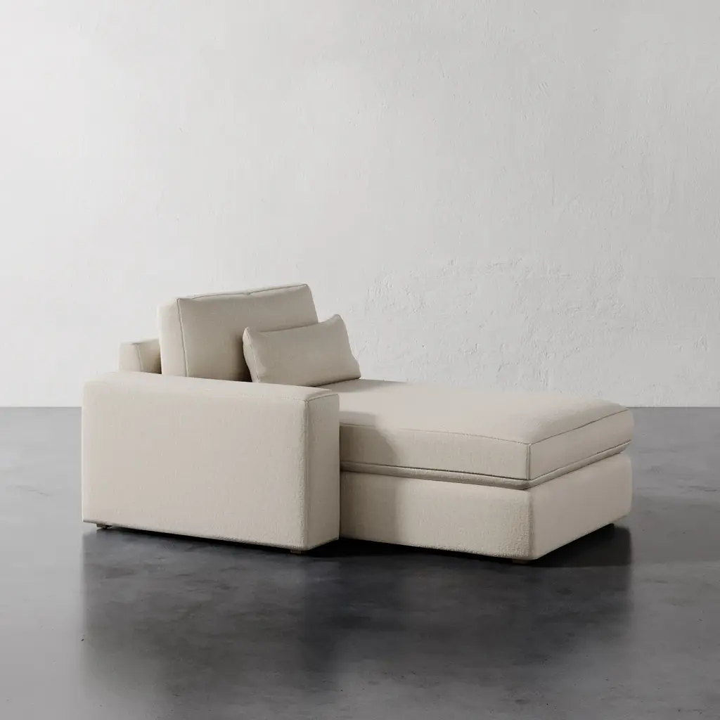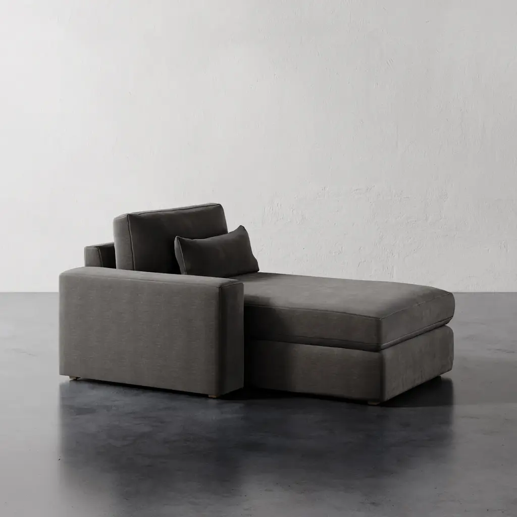 The Lacroix Collection from Lemieux et Cie is a modular masterpiece that brings timeless form and modern comfort into perfect balance. Inspired by the iconic geometry of Jean-Michel Frank, each piece is defined by clean rectilinear lines and deep, generous proportions. Designed for versatility, the collection includes multiple modular components that can be configured to create custom sectional sofas of any size or scale. With sink-into comfort and sculptural simplicity, the Lacroix Collection offers a tailored foundation for contemporary living. Bolster pillows included.The Lacroix Chaise & A Half is handmade by skilled artisans in North Carolina.