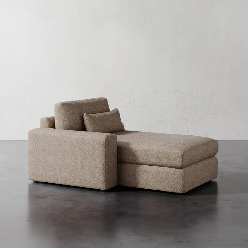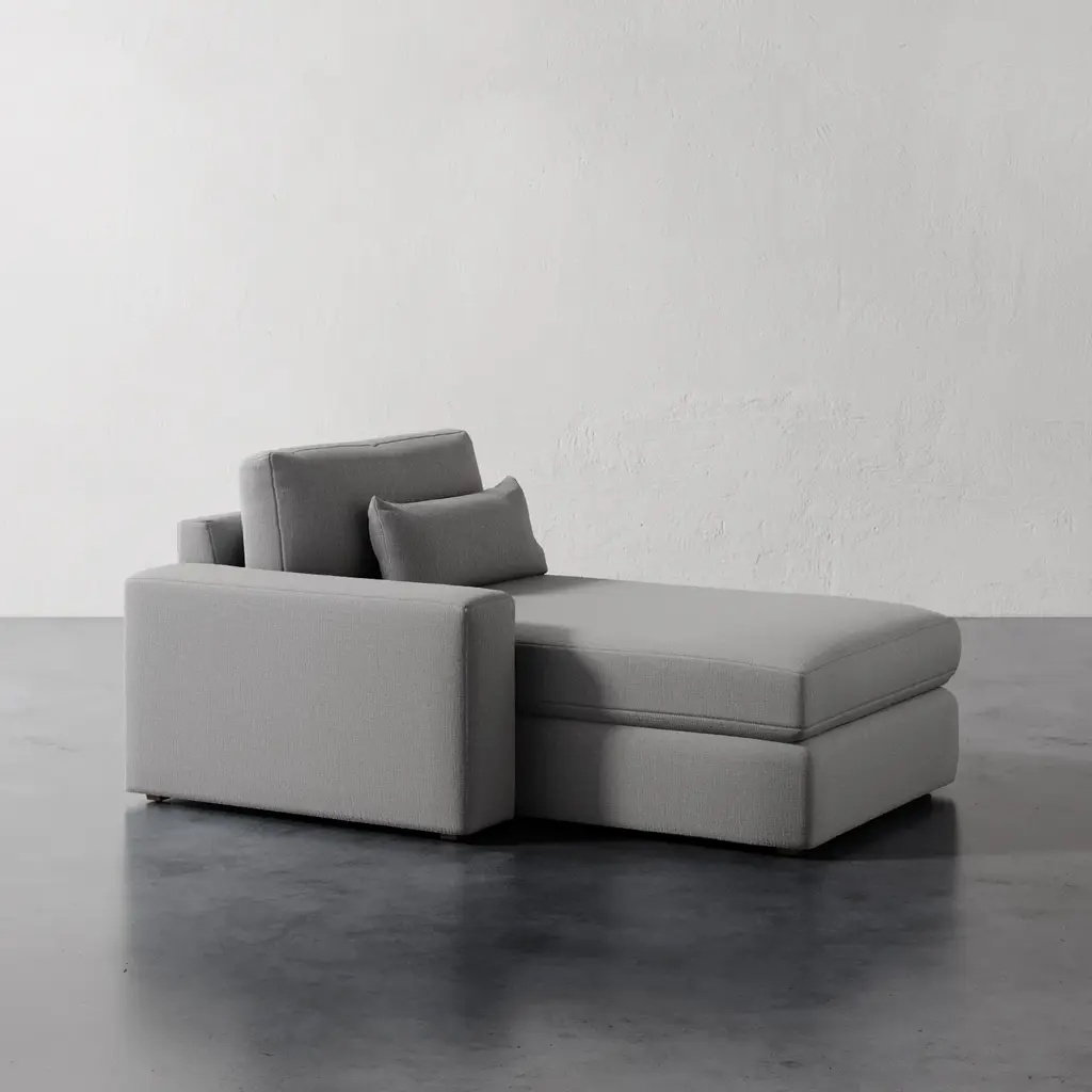 The Lacroix Collection from Lemieux et Cie is a modular masterpiece that brings timeless form and modern comfort into perfect balance. Inspired by the iconic geometry of Jean-Michel Frank, each piece is defined by clean rectilinear lines and deep, generous proportions. Designed for versatility, the collection includes multiple modular components that can be configured to create custom sectional sofas of any size or scale. With sink-into comfort and sculptural simplicity, the Lacroix Collection offers a tailored foundation for contemporary living. Bolster pillows included.The Lacroix Chaise & A Half is handmade by skilled artisans in North Carolina.