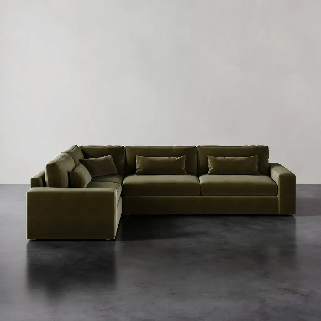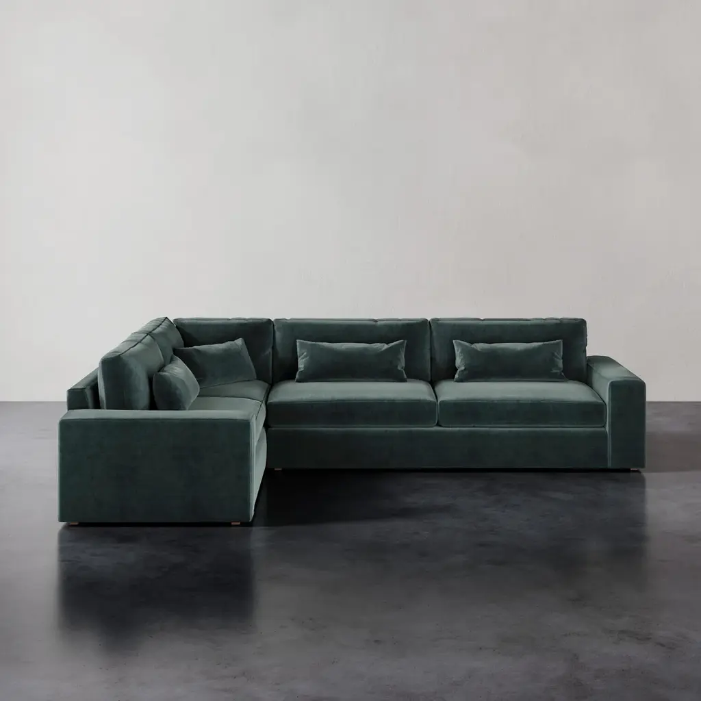 The Lacroix Collection from Lemieux et Cie is a modular masterpiece that brings timeless form and modern comfort into perfect balance. Inspired by the iconic geometry of Jean-Michel Frank, each piece is defined by clean rectilinear lines and deep, generous proportions. Designed for versatility, the collection includes multiple modular components that can be configured to create custom sectional sofas of any size or scale. With sink-into comfort and sculptural simplicity, the Lacroix Collection offers a tailored foundation for contemporary living. Bolster pillows included.The Lacroix Sectional is handmade by skilled artisans in North Carolina.