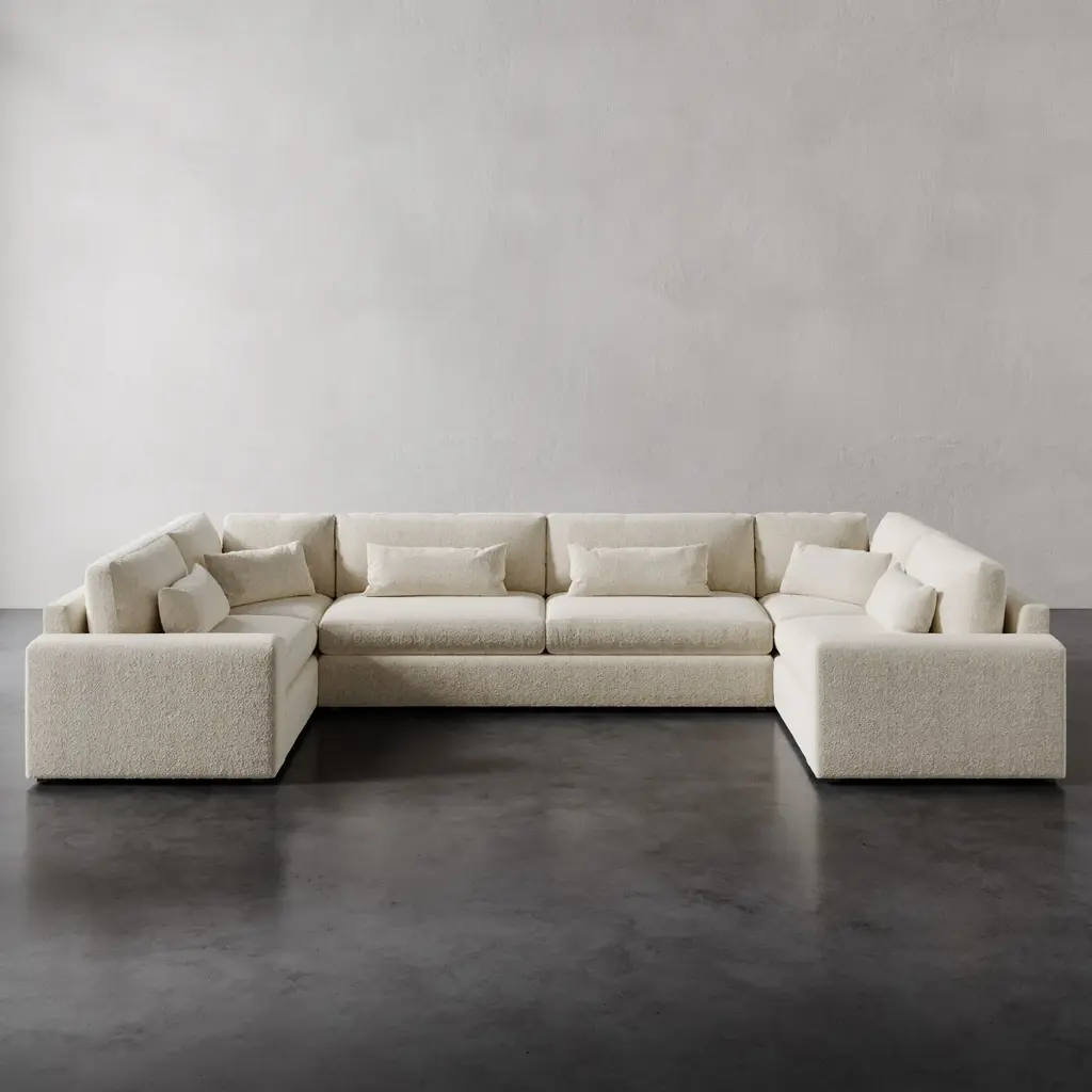The Lacroix Collection from Lemieux et Cie is a modular masterpiece that brings timeless form and modern comfort into perfect balance. Inspired by the iconic geometry of Jean-Michel Frank, each piece is defined by clean rectilinear lines and deep, generous proportions. Designed for versatility, the collection includes multiple modular components that can be configured to create custom sectional sofas of any size or scale. With sink-into comfort and sculptural simplicity, the Lacroix Collection offers a tailored foundation for contemporary living. Bolster pillows included.The Lacroix U-Sectional is handmade by skilled artisans in North Carolina.