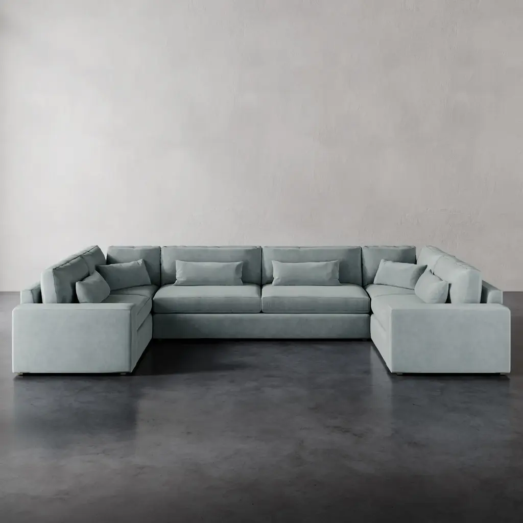 The Lacroix Collection from Lemieux et Cie is a modular masterpiece that brings timeless form and modern comfort into perfect balance. Inspired by the iconic geometry of Jean-Michel Frank, each piece is defined by clean rectilinear lines and deep, generous proportions. Designed for versatility, the collection includes multiple modular components that can be configured to create custom sectional sofas of any size or scale. With sink-into comfort and sculptural simplicity, the Lacroix Collection offers a tailored foundation for contemporary living. Bolster pillows included.The Lacroix U-Sectional is handmade by skilled artisans in North Carolina.