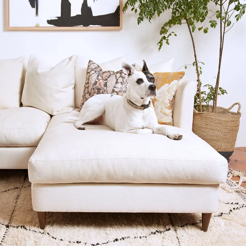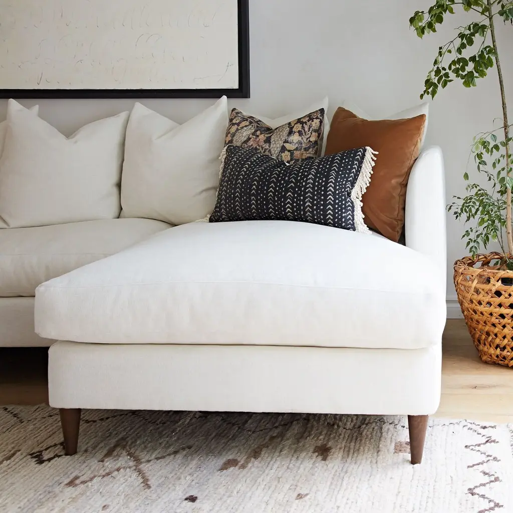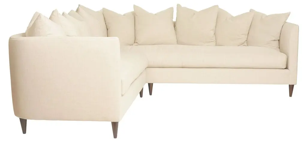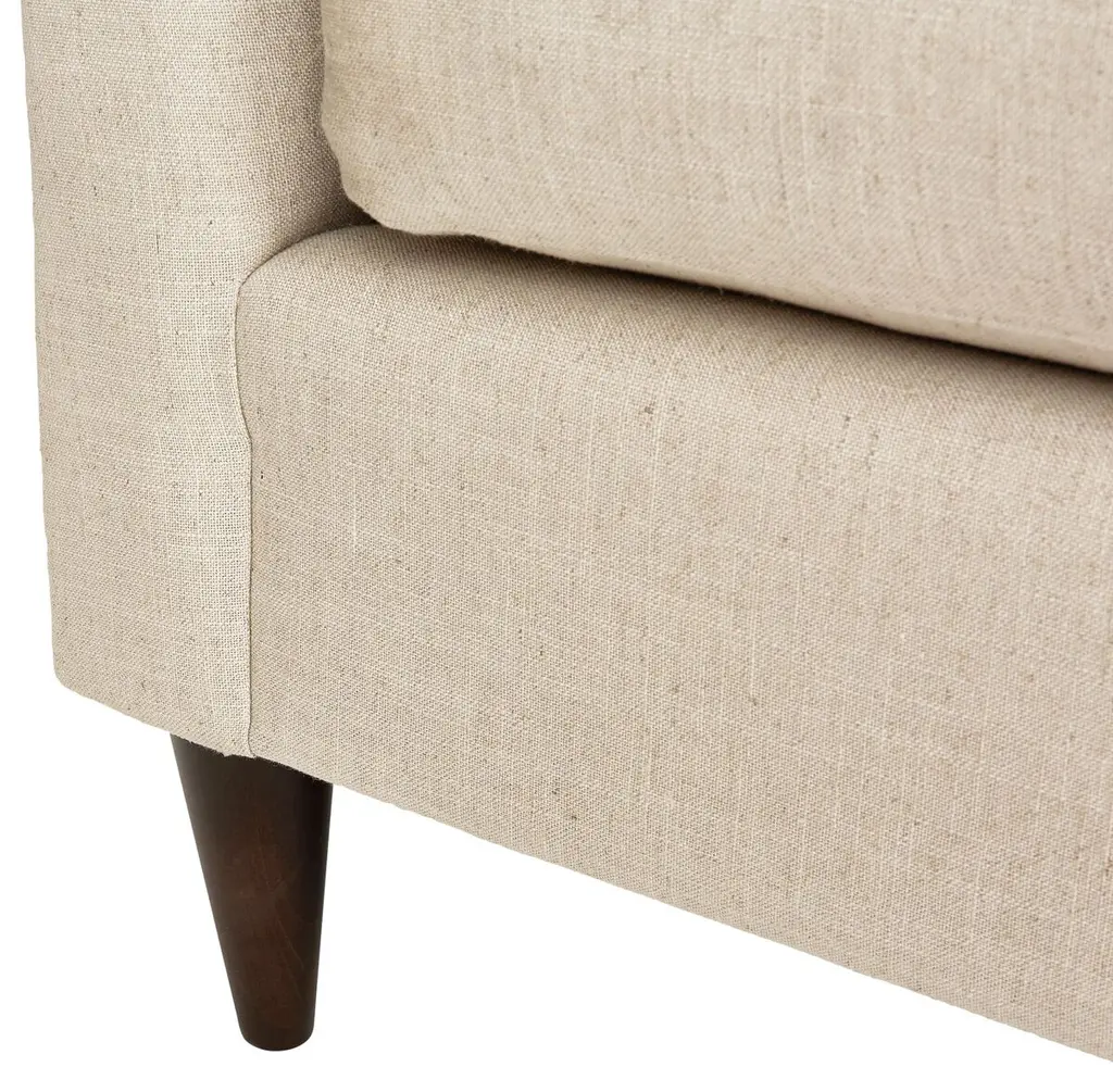 Exclusive to One Kings Lane: This left-facing sectional offers plenty of room for stretching out, yet it maintains a fresh, light look. That's down to the exposed tapered legs, slender arms, and curved back. Amply padded cushions provide long-lasting comfort. The woven linen-like upholstery has been treated so that it resists stains and is easy to clean, making this sectional a savvy choice for households with children, pets, or spill-prone adults.