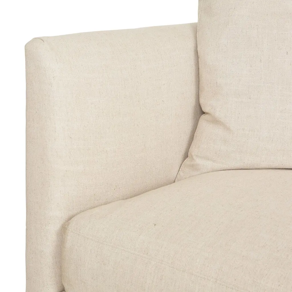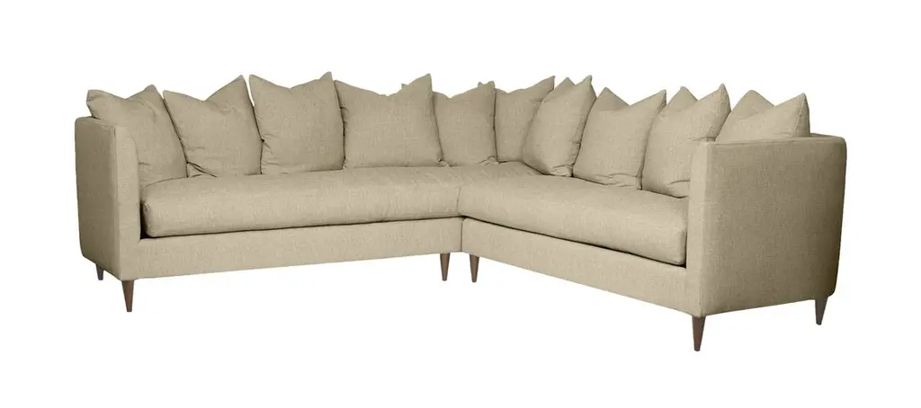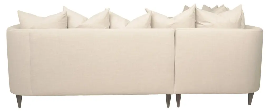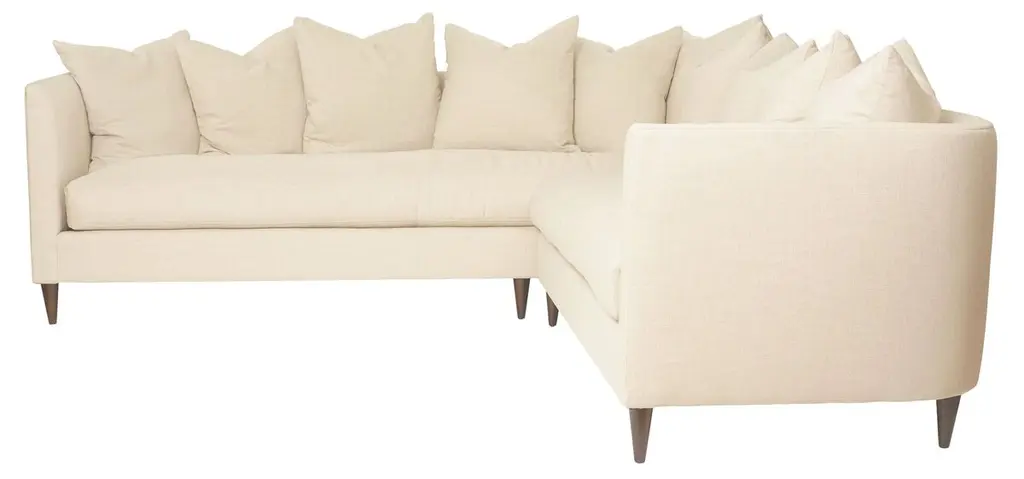 Exclusive to One Kings Lane: This sectional offers plenty of room for stretching out, yet it maintains a fresh, light look. That's down to the exposed tapered legs, slender arms, and curved back. Amply padded cushions provide long-lasting comfort. The woven linen-like upholstery has been treated so that it resists stains and is easy to clean, making this sectional a savvy choice for households with children, pets, or spill-prone adults.
