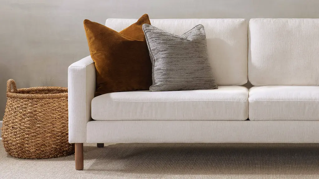 DESIGN Versatile, tailored, and easy to style, the Laguna features a crisp, clean design that complements any look. Cylindrical wooden legs give this collection its current appeal without feeling overly trendy. Handcrafted in the USA. FEATURES Solid Foundation: Our frames are constructed from precision-cut, FSC-certified engineered wood for unmatched strength and stability, featuring reinforced, interlocking joinery for added durability. Crafted for Coziness & Durability: Foam & fiber cushions offer our most supportive yet comfortable sit with a sleek, tailored look that requires minimal fluffing. These cushions feature high-quality, high-resiliency CertiPUR-US® foam core seats wrapped in premium fiber with fiber-filled back cushions. CertiPur-US® foam is held to the highest standards of product safety and durability, so you can rest easy. Supportive Webbing Suspension: Designed to maximize comfort, our premium webbing system provides a resilient foundation. Customizable Upholstery: Choose from a vast selection of durable premium and performance fabrics and genuine Italian leather to personalize your Laguna Sectional's look.