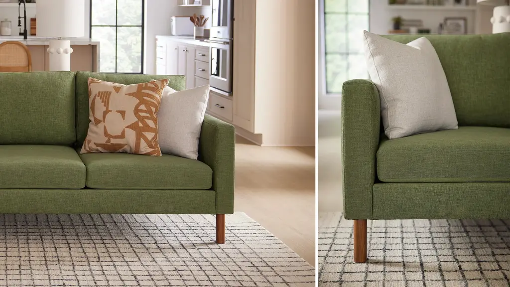 DESIGN Versatile, tailored, and easy to style, the Laguna features a crisp, clean design that complements any look. Cylindrical wooden legs give this collection its current appeal without feeling overly trendy. Handcrafted in the USA. FEATURES Solid Foundation: Our frames are constructed from precision-cut, FSC-certified engineered wood for unmatched strength and stability, featuring reinforced, interlocking joinery for added durability. Crafted for Coziness & Durability: Foam & fiber cushions offer our most supportive yet comfortable sit with a sleek, tailored look that requires minimal fluffing. These cushions feature high-quality, high-resiliency CertiPUR-US® foam core seats wrapped in premium fiber with fiber-filled back cushions. CertiPur-US® foam is held to the highest standards of product safety and durability, so you can rest easy. Supportive Webbing Suspension: Designed to maximize comfort, our premium webbing system provides a resilient foundation. Customizable Upholstery: Choose from a vast selection of durable premium and performance fabrics and genuine Italian leather to personalize your Laguna Sectional with Bumper's look.