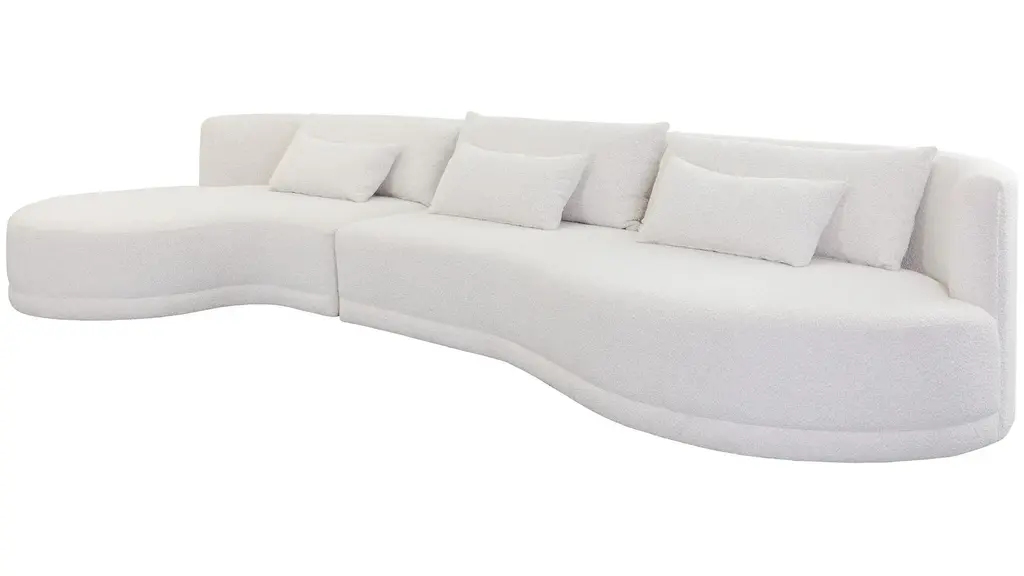 Indulge in the soft curves of the Laken Sofa Chaise. Upholstered in our stylish boucle fabric with a refined silhouette, this sofa chaise provides maximum comfort for entertaining in open spaces.