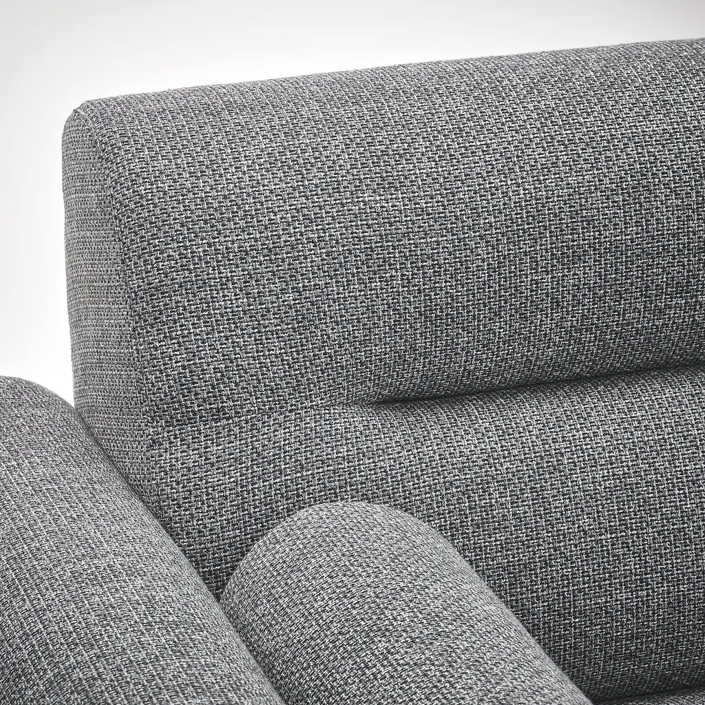 LÅNGARYD Sofa w chaise, left - Lejde gray/black/metal. LÅNGARYD sofa has a long-lasting look and comfort to enjoy for many years. The tufted back cushion gives the sofa character while the legs make the stable construction feel light and airy. Stationary cover.