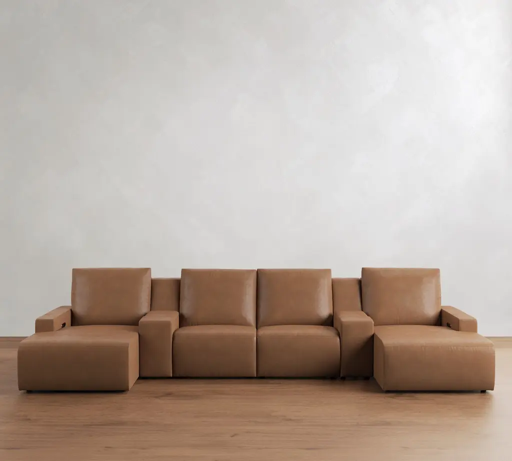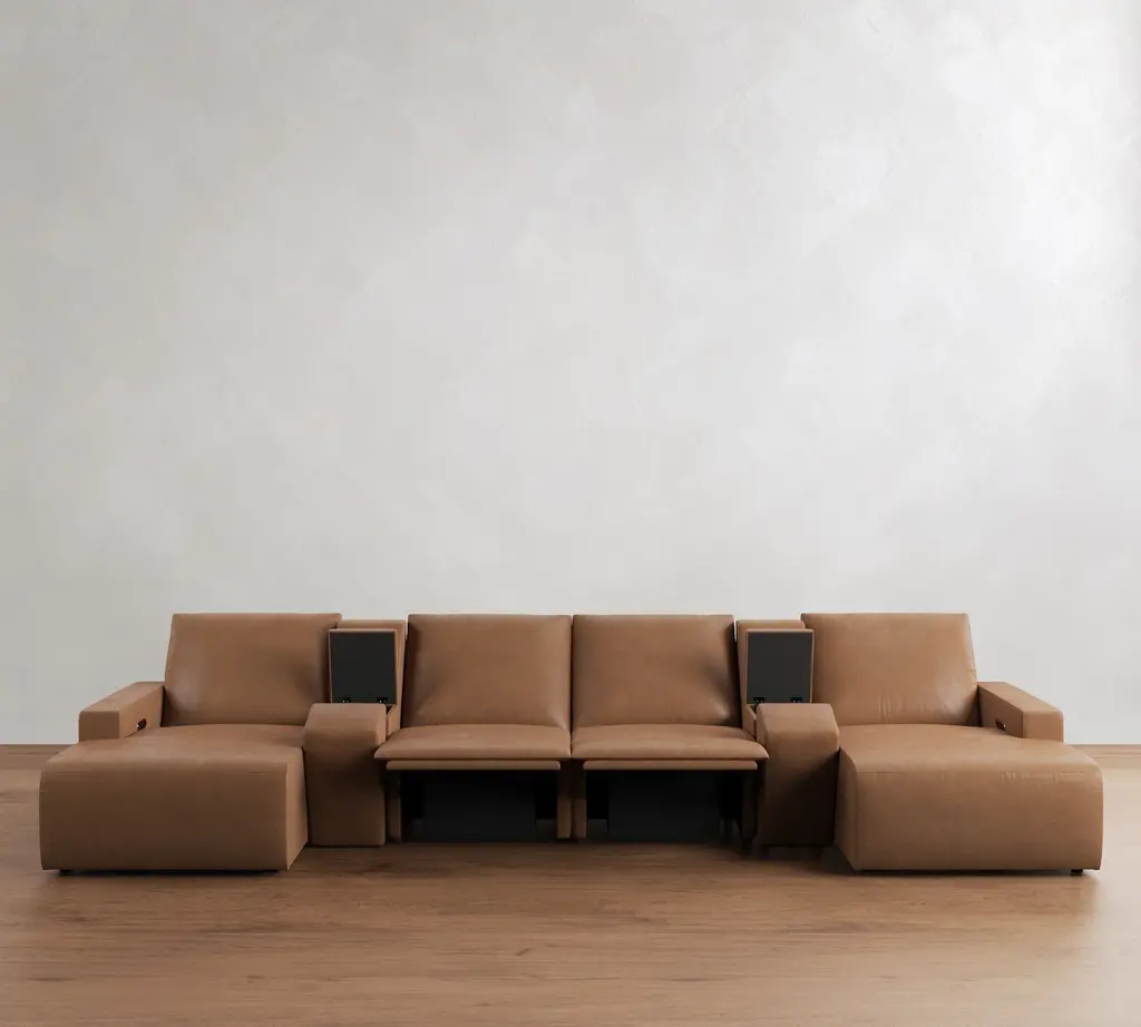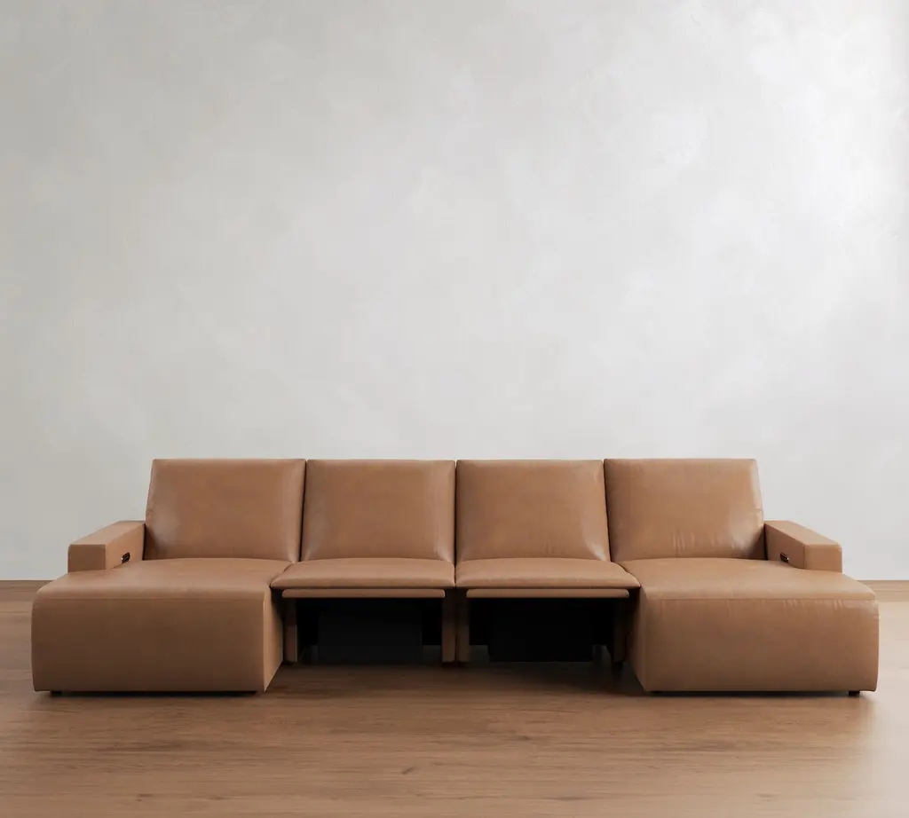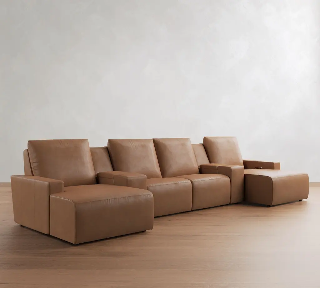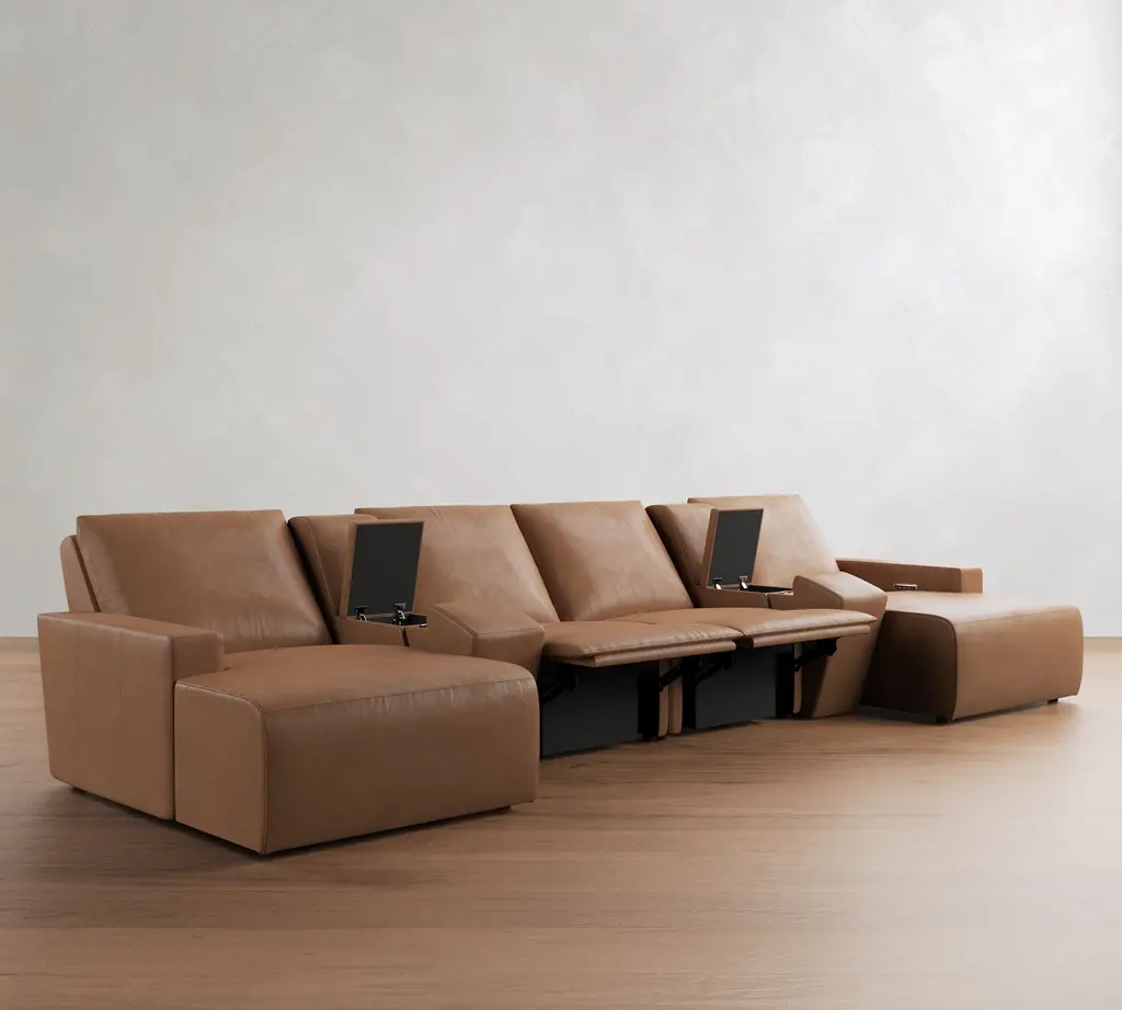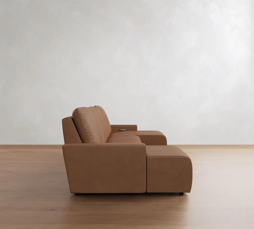 Larkspur Leather Power Reclining Double Chaise Sectional-Storage Available (146"-172")