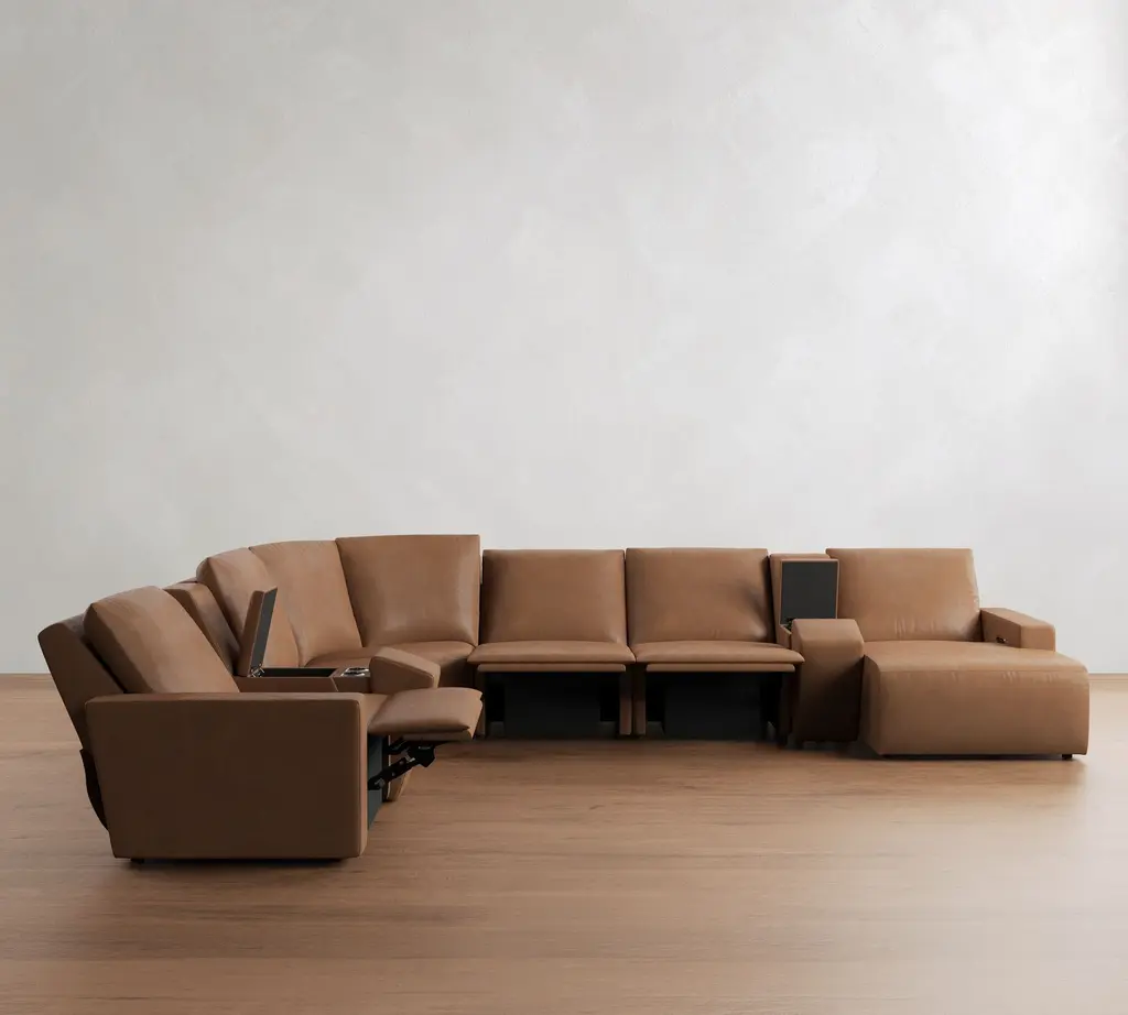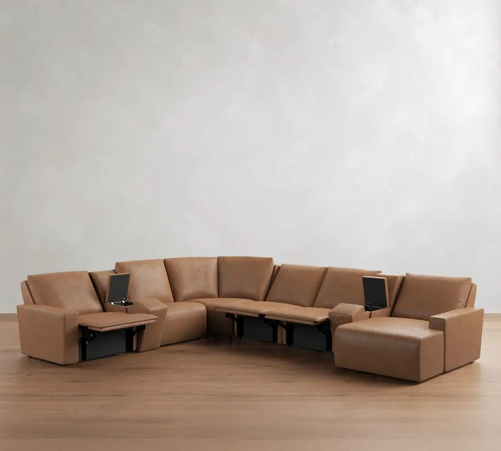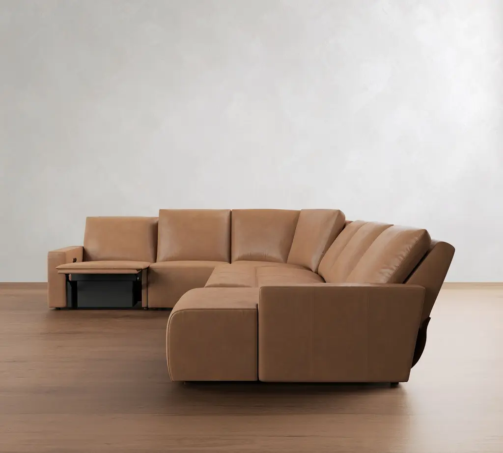 Larkspur Leather Power Reclining L-Shaped Wedge Chaise Sectional-Storage Available (175"-188")
