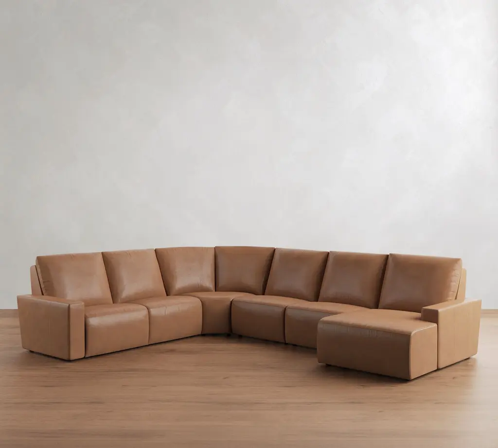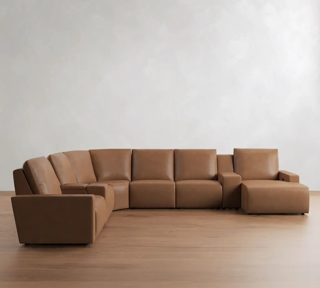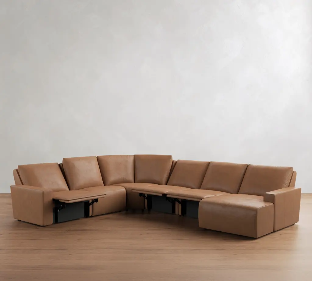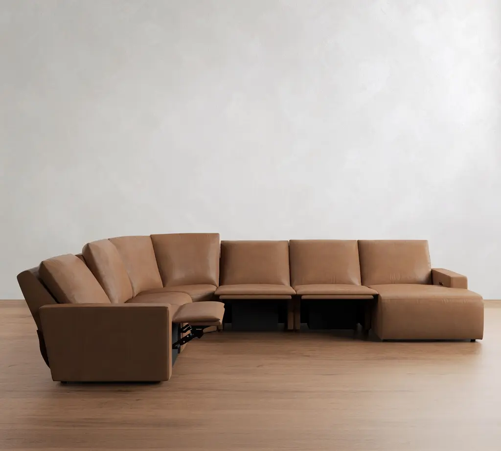 Larkspur Leather Power Reclining L-Shaped Wedge Chaise Sectional-Storage Available (175"-188")