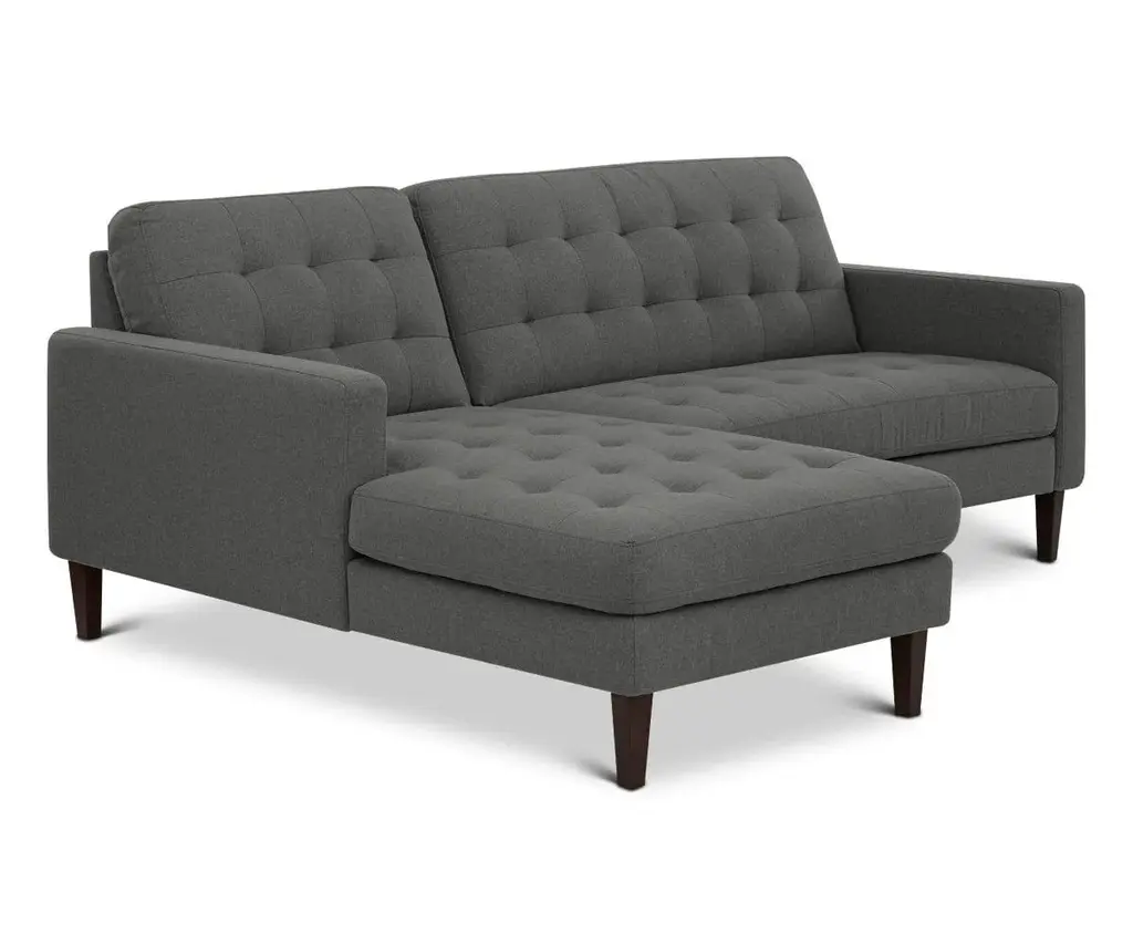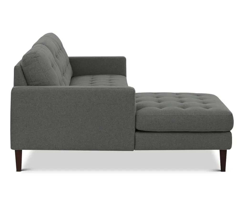 Relax into comfort in sophisticated style with the Laura Chaise Sectional. The understated profile allows attention to focus on the traditional tufting of the cushions complemented by the sleek modern lines of the frame. Attractive from every angle and top-to-bottom, the tapered legs complete the look.