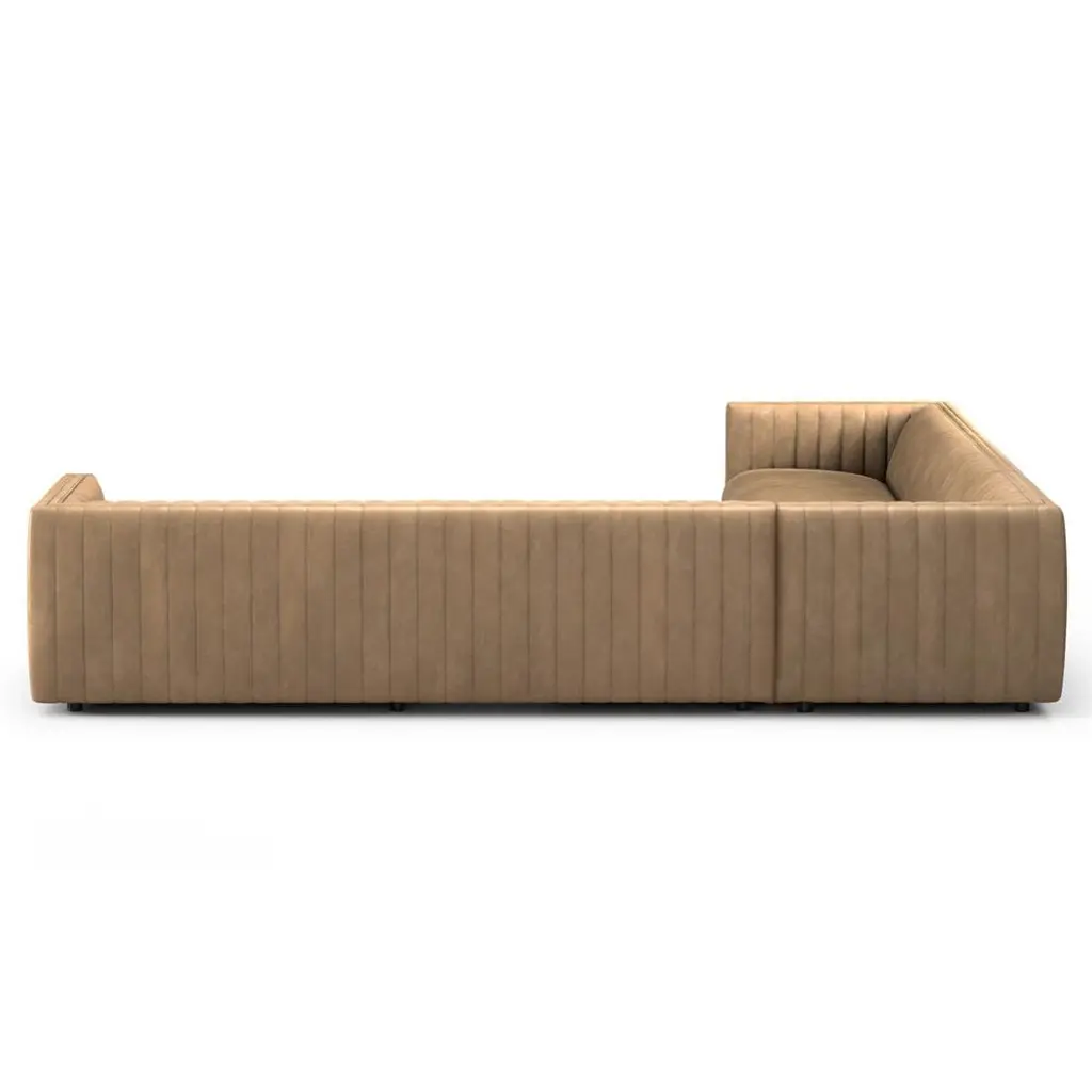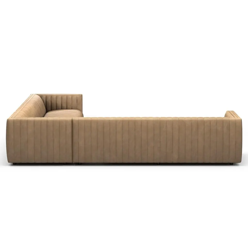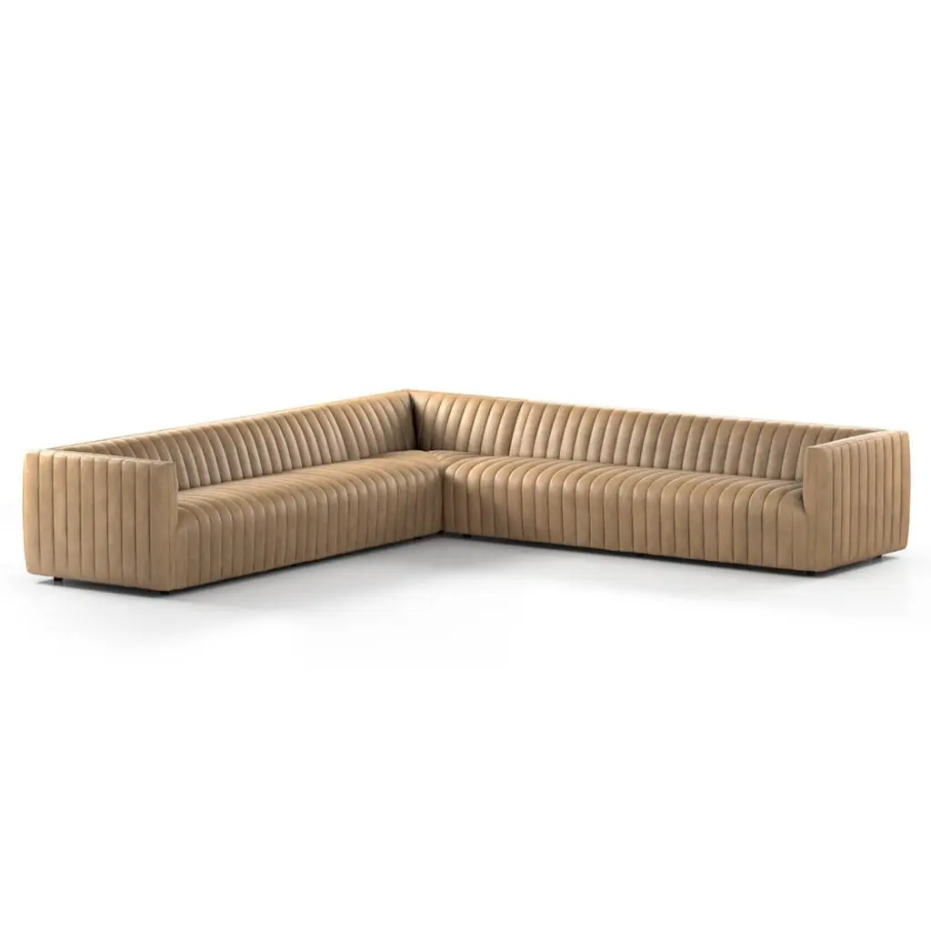 Leo Modern Classic Beige Channeled Leather Corner Sectional - 126"
