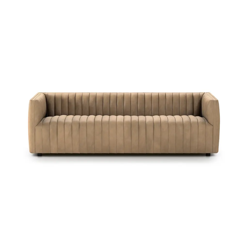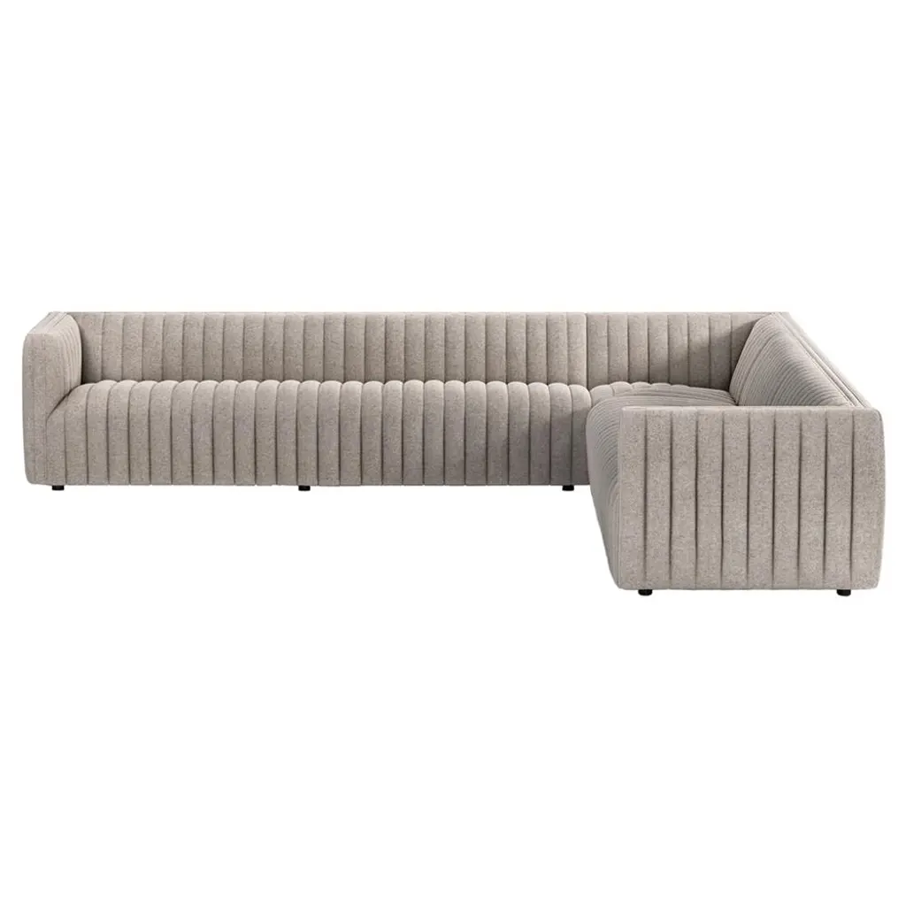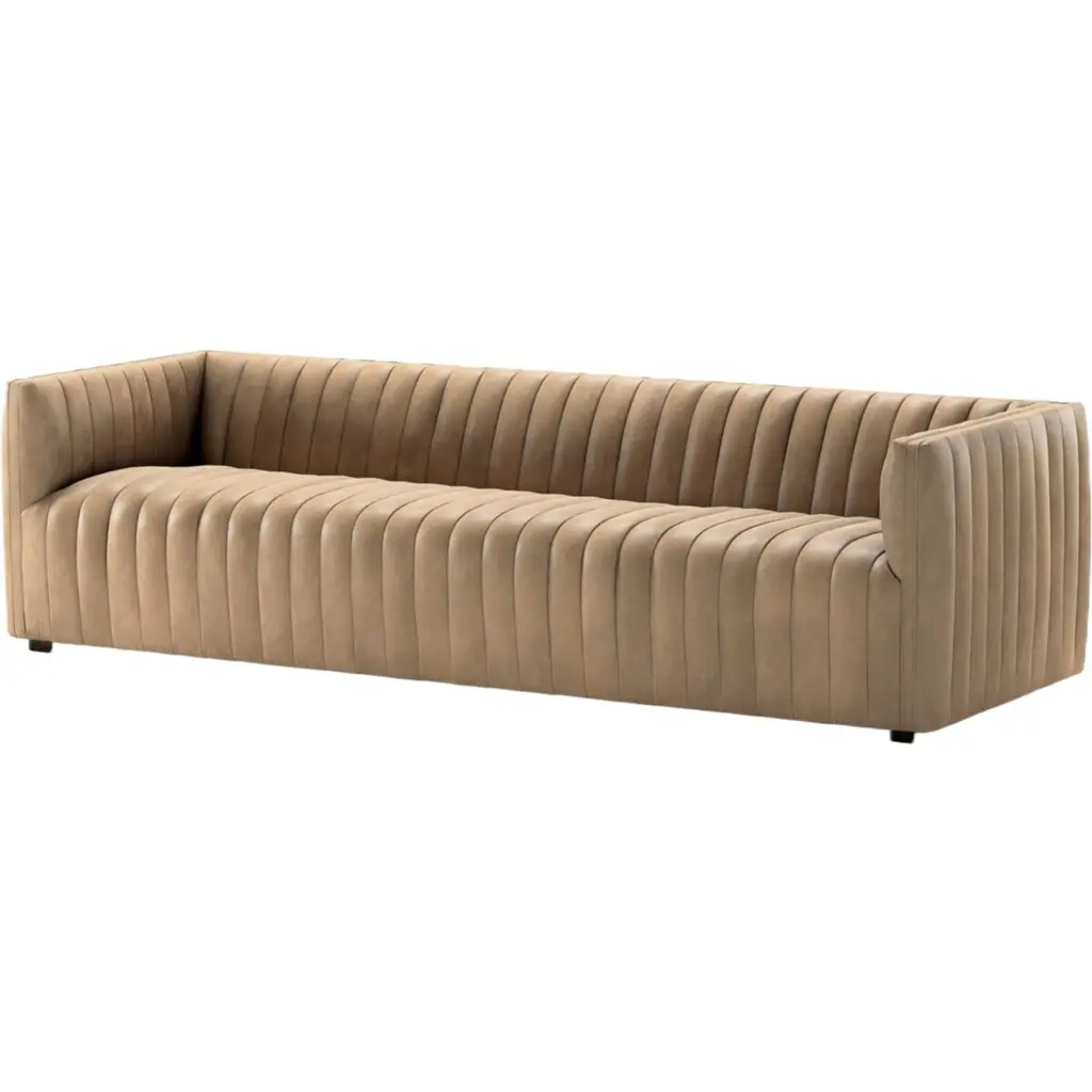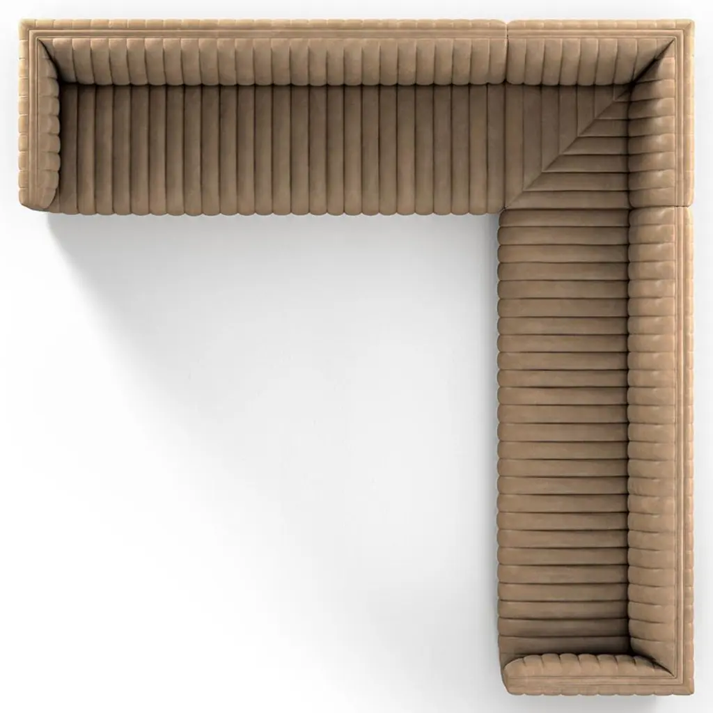 Leo Modern Classic Beige Channeled Leather Corner Sectional - 126"