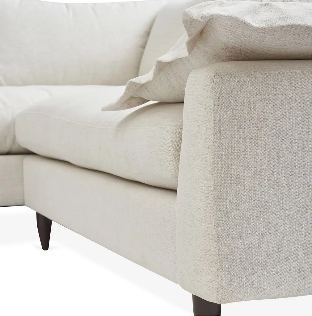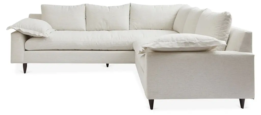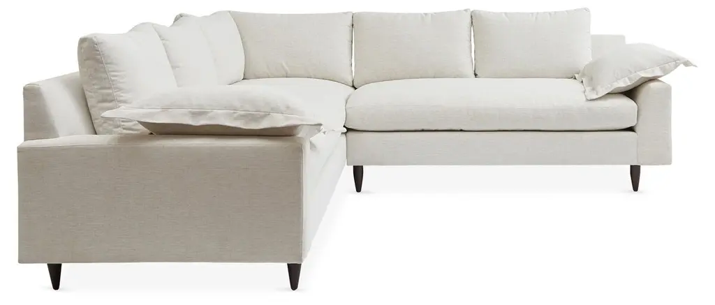 Boasting relaxed silhouette and neutral gray hue, this amply padded sectional works well in almost any interior. And because this piece is upholstered in high-performing Crypton fabric, it repels stains, spills, bacteria, and mold. Two arm cushions included. Handcrafted in Southern California.