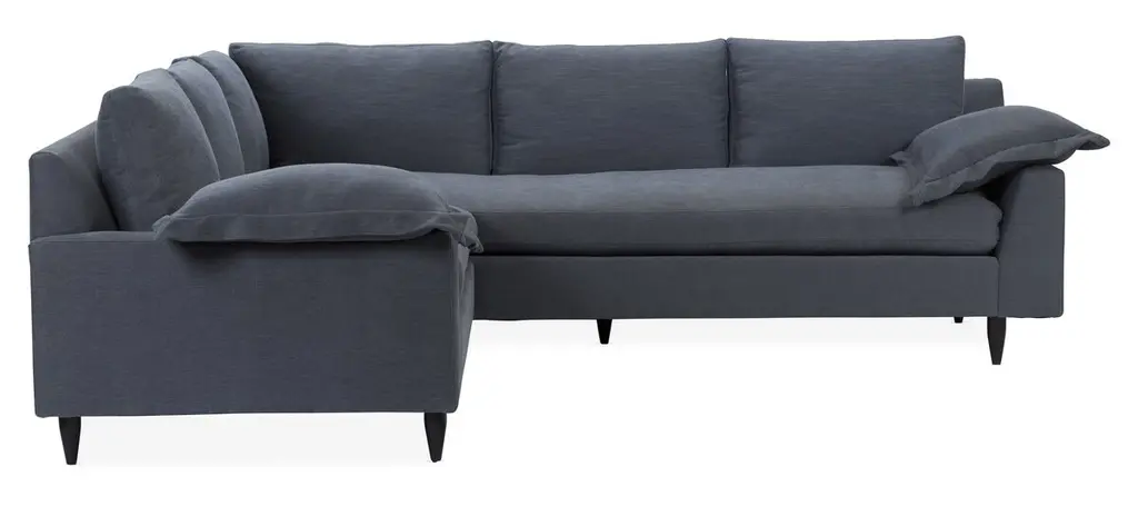 Boasting relaxed silhouette and neutral gray hue, this amply padded sectional works well in almost any interior. And because this piece is upholstered in high-performing Crypton fabric, it repels stains, spills, bacteria, and mold. Two arm cushions included. Handcrafted in Southern California.
