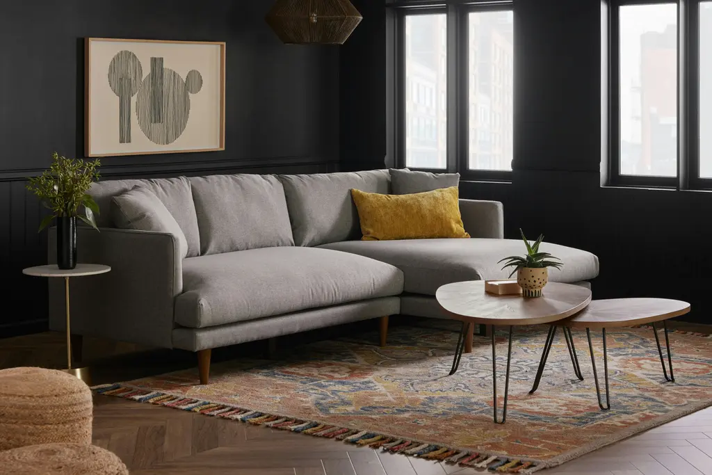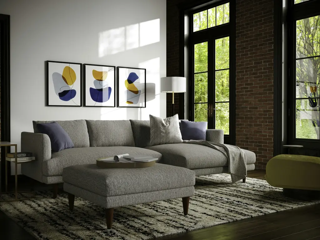 A spacious iteration on the Lewis Collection’s contemporary design, the Lewis Sectional is tailor made for bringing together those you care about most. Sporting luxuriously deep seats, low shelter arms, and pillowed backs, the Lewis is sure to add notes of sophistication and charm to anything from holiday parties to family movie nights. Overstuffed plush cushioning makes this classic sectional perfect for gatherings of all kinds.