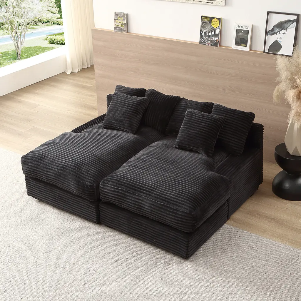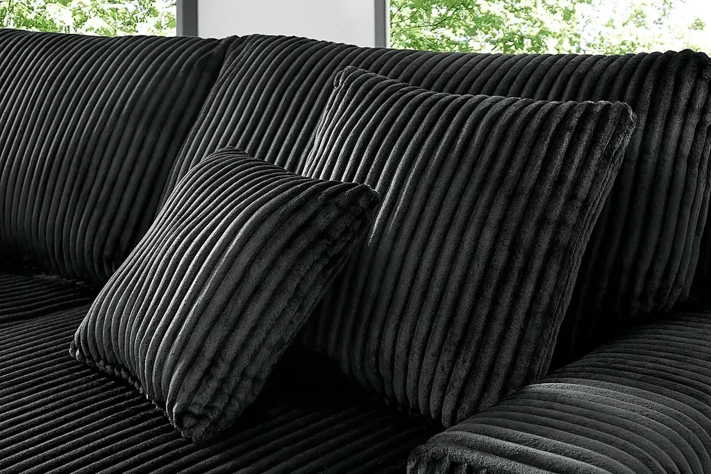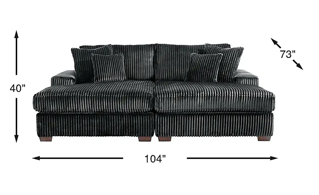 Runway inspiration meets unapologetic indulgence in Lexford Park, blending the poise of high-fashion with the ease of everyday relaxation. Clad in ribbed black corduroy, this sectional features a symmetrical pair of chaise lounges that meet at the center to form a sweetheart-inspired two-seater. Whether you're stretching out solo or sharing the moment, the generous seat depth offers plenty of room for one or more to sink into sumptuous comfort. Low profile track arms cinch the look with a slight contemporary edge that adds a chic detail to the breathtaking silhouette. Reversible back and seat cushions make it easy to fluff up the sectional and make it as ready for a close-up as you are to relax. Upholstery: 100% Polyester. Cleaning Instructions: Use water-based cleaning agents or foam.