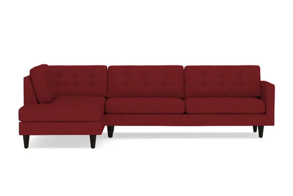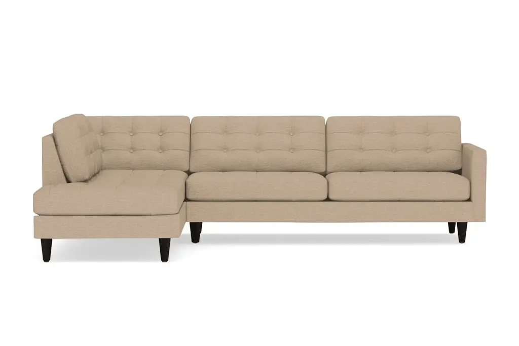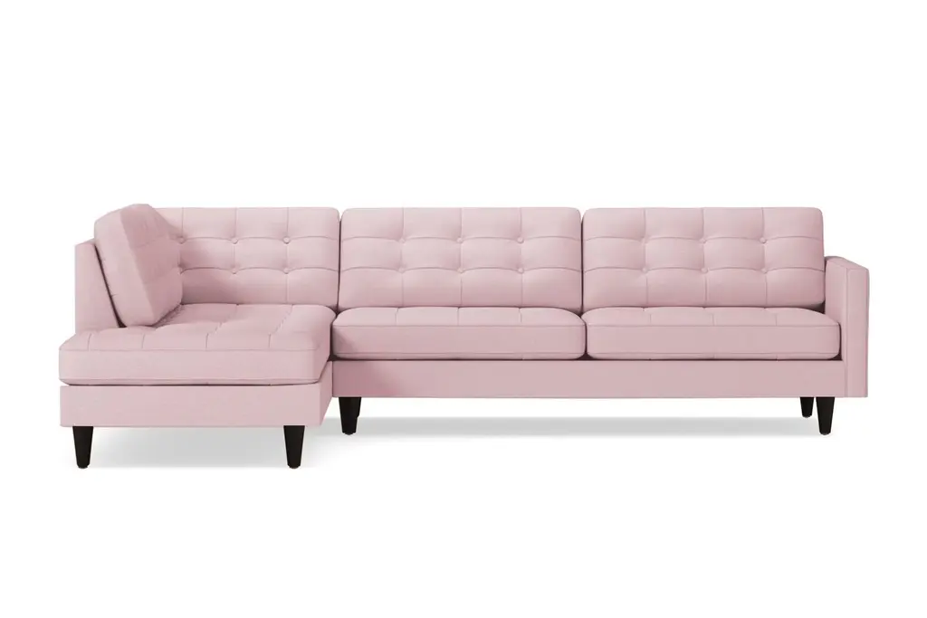 Looking for the perfect combination of comfort and style? Thanks to the Lexington Two-Piece Sectional Sofa, the search is over. The plush, button-tufted cushions are so inviting yet chic and the tapered dark wooden legs add to the midcentury modern mystique. This sofa is available in a selection of colors and fabrics, so whether you're looking for an easy-to-clean poly-nylon blend or a resilient ultra-tight weave (pictured), you'll find the perfect upholstery and color to suit your taste. And if you can't decide, we're more than happy to send you complimentary swatches. This sectional was made in the United States and features a limited lifetime warranty. We offer a 100-percent satisfaction guarantee. Totally hip and mod, the Lexington Collection is a fantastically stylish, contemporary take on a classic design. The button tufted cushioning and unique wooden legs give it a mid-century modern look.