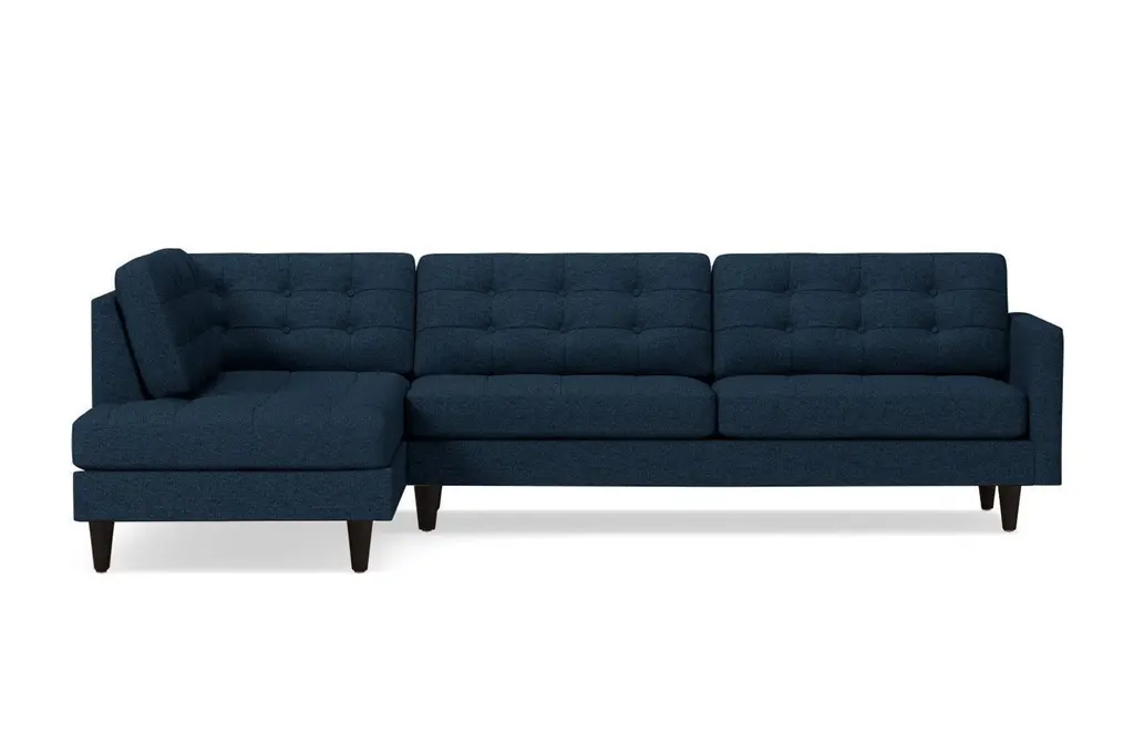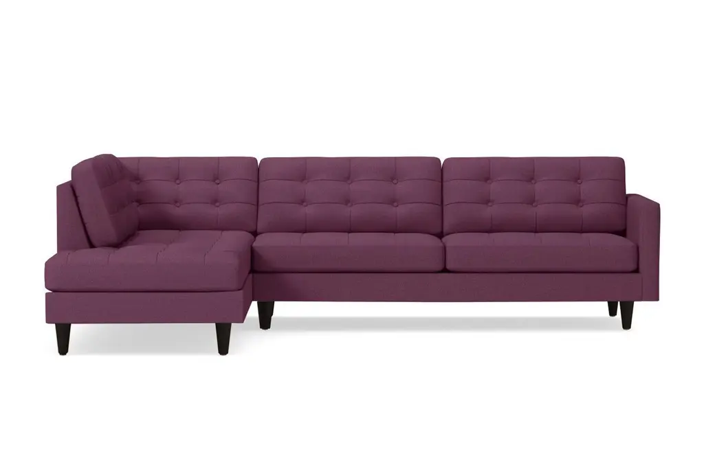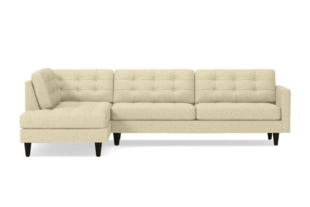 Looking for the perfect combination of comfort and style? Thanks to the Lexington Two-Piece Sectional Sofa, the search is over. The plush, button-tufted cushions are so inviting yet chic and the tapered dark wooden legs add to the midcentury modern mystique. This sofa is available in a selection of colors and fabrics, so whether you're looking for an easy-to-clean poly-nylon blend or a resilient ultra-tight weave (pictured), you'll find the perfect upholstery and color to suit your taste. And if you can't decide, we're more than happy to send you complimentary swatches. This sectional was made in the United States and features a limited lifetime warranty. We offer a 100-percent satisfaction guarantee. Totally hip and mod, the Lexington Collection is a fantastically stylish, contemporary take on a classic design. The button tufted cushioning and unique wooden legs give it a mid-century modern look.
