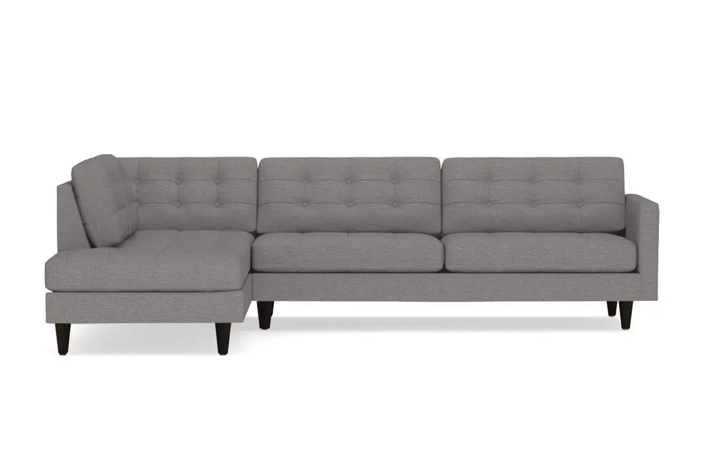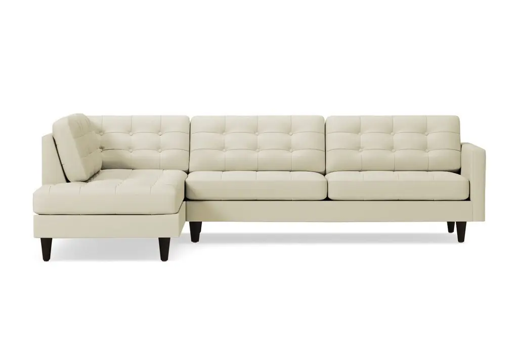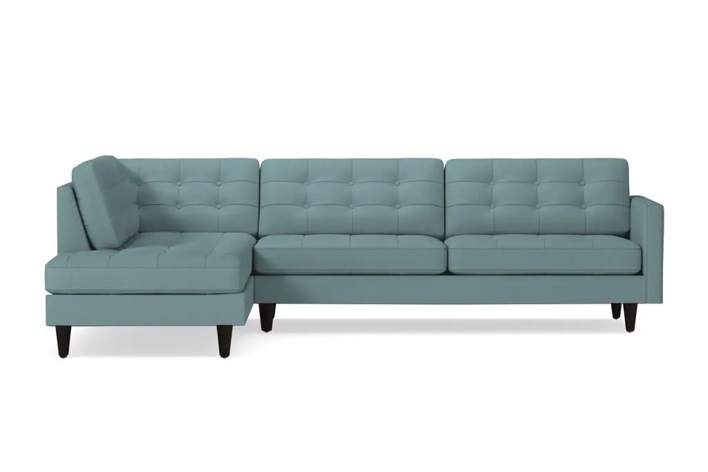 Looking for the perfect combination of comfort and style? Thanks to the Lexington Two-Piece Sectional Sofa, the search is over. The plush, button-tufted cushions are so inviting yet chic and the tapered dark wooden legs add to the midcentury modern mystique. This sofa is available in a selection of colors and fabrics, so whether you're looking for an easy-to-clean poly-nylon blend or a resilient ultra-tight weave (pictured), you'll find the perfect upholstery and color to suit your taste. And if you can't decide, we're more than happy to send you complimentary swatches. This sectional was made in the United States and features a limited lifetime warranty. We offer a 100-percent satisfaction guarantee. Totally hip and mod, the Lexington Collection is a fantastically stylish, contemporary take on a classic design. The button tufted cushioning and unique wooden legs give it a mid-century modern look.