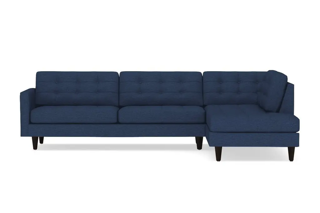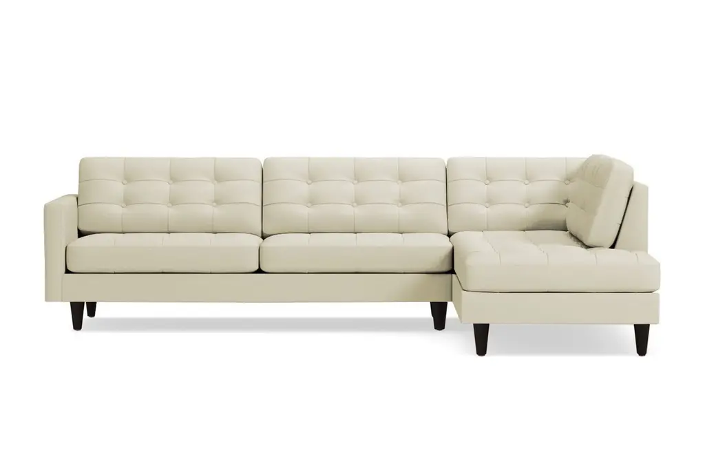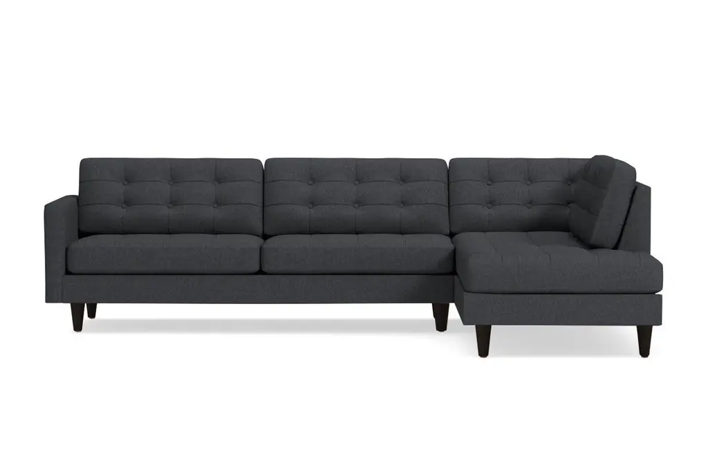Looking for the perfect combination of comfort and style? Thanks to the Lexington Two-Piece Sectional Sofa, the search is over. The plush, button-tufted cushions are so inviting yet chic and the tapered dark wooden legs add to the midcentury modern mystique. This sofa is available in a selection of colors and fabrics, so whether you're looking for an easy-to-clean poly-nylon blend or a resilient ultra-tight weave (pictured), you'll find the perfect upholstery and color to suit your taste. And if you can't decide, we're more than happy to send you complimentary swatches. This sectional was made in the United States and features a limited lifetime warranty. We offer a 100-percent satisfaction guarantee. Totally hip and mod, the Lexington Collection is a fantastically stylish, contemporary take on a classic design. The button tufted cushioning and unique wooden legs give it a mid-century modern look.