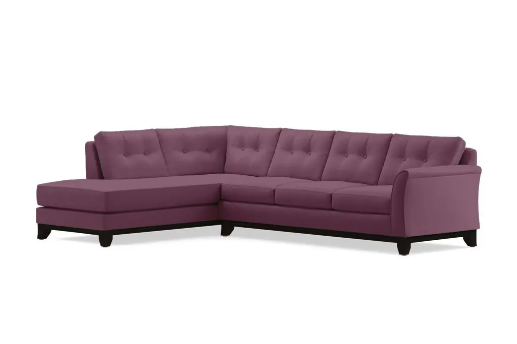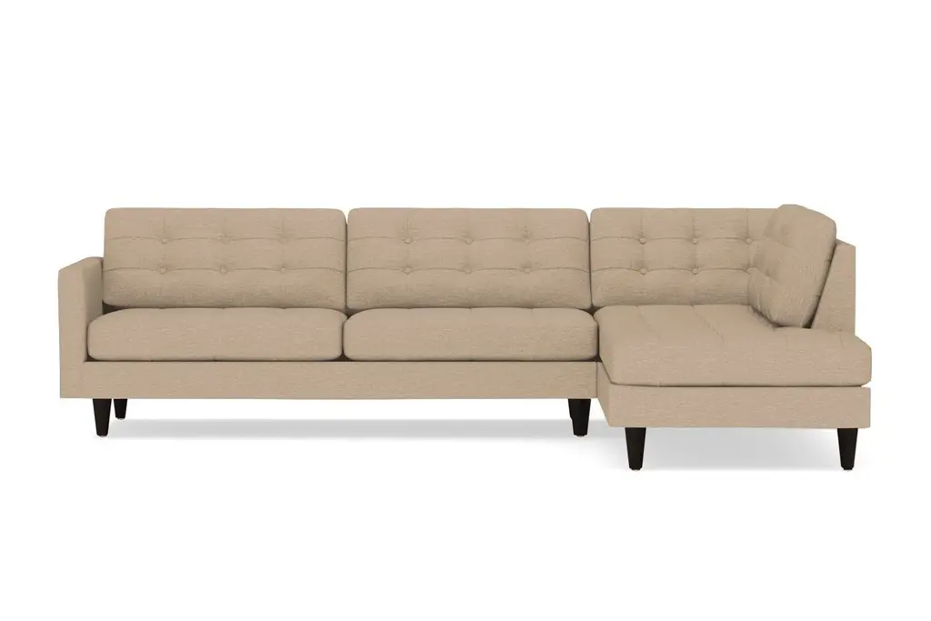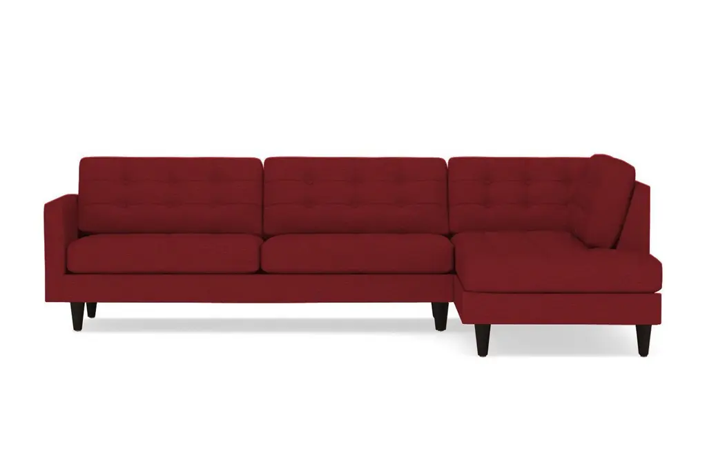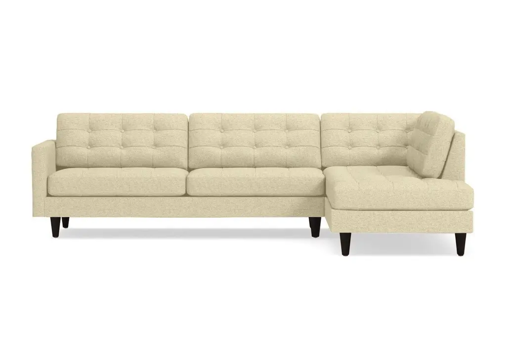 Looking for the perfect combination of comfort and style? Thanks to the Lexington Two-Piece Sectional Sofa, the search is over. The plush, button-tufted cushions are so inviting yet chic and the tapered dark wooden legs add to the midcentury modern mystique. This sofa is available in a selection of colors and fabrics, so whether you're looking for an easy-to-clean poly-nylon blend or a resilient ultra-tight weave (pictured), you'll find the perfect upholstery and color to suit your taste. And if you can't decide, we're more than happy to send you complimentary swatches. This sectional was made in the United States and features a limited lifetime warranty. We offer a 100-percent satisfaction guarantee. Totally hip and mod, the Lexington Collection is a fantastically stylish, contemporary take on a classic design. The button tufted cushioning and unique wooden legs give it a mid-century modern look.