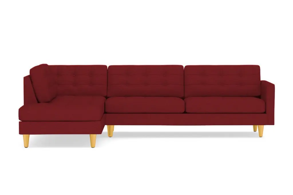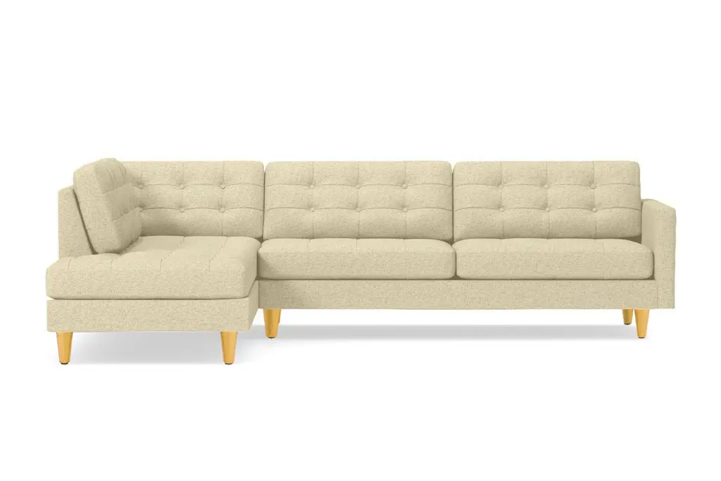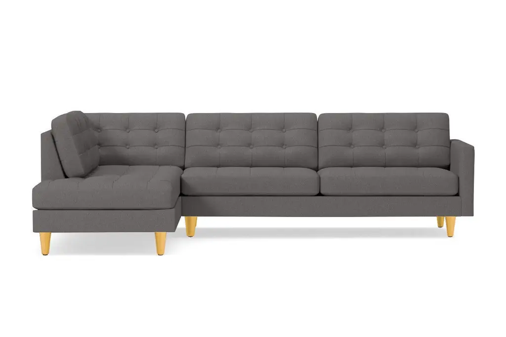 Looking for the perfect combination of comfort and style? Thanks to the Lexington Two-Piece Sectional Sofa, the search is over. The plush, button-tufted cushions are so inviting yet chic and the tapered dark wooden legs add to the midcentury modern mystique. This sofa is available in a selection of colors and fabrics, so whether you're looking for an easy-to-clean poly-nylon blend or a resilient ultra-tight weave (pictured), you'll find the perfect upholstery and color to suit your taste. And if you can't decide, we're more than happy to send you complimentary swatches. This sectional was made in the United States and features a limited lifetime warranty. We offer a 100-percent satisfaction guarantee. Totally hip and mod, the Lexington Collection is a fantastically stylish, contemporary take on a classic design. The button tufted cushioning and unique wooden legs give it a mid-century modern look.