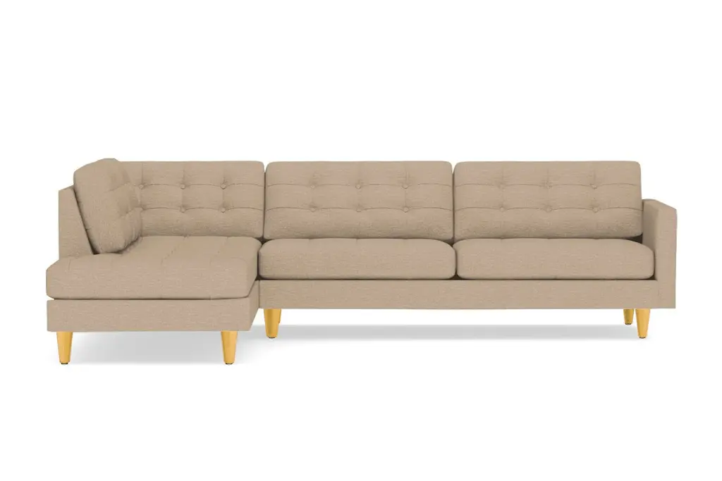Looking for the perfect combination of comfort and style? Thanks to the Lexington Two-Piece Sectional Sofa, the search is over. The plush, button-tufted cushions are so inviting yet chic and the tapered dark wooden legs add to the midcentury modern mystique. This sofa is available in a selection of colors and fabrics, so whether you're looking for an easy-to-clean poly-nylon blend or a resilient ultra-tight weave (pictured), you'll find the perfect upholstery and color to suit your taste. And if you can't decide, we're more than happy to send you complimentary swatches. This sectional was made in the United States and features a limited lifetime warranty. We offer a 100-percent satisfaction guarantee. Totally hip and mod, the Lexington Collection is a fantastically stylish, contemporary take on a classic design. The button tufted cushioning and unique wooden legs give it a mid-century modern look.