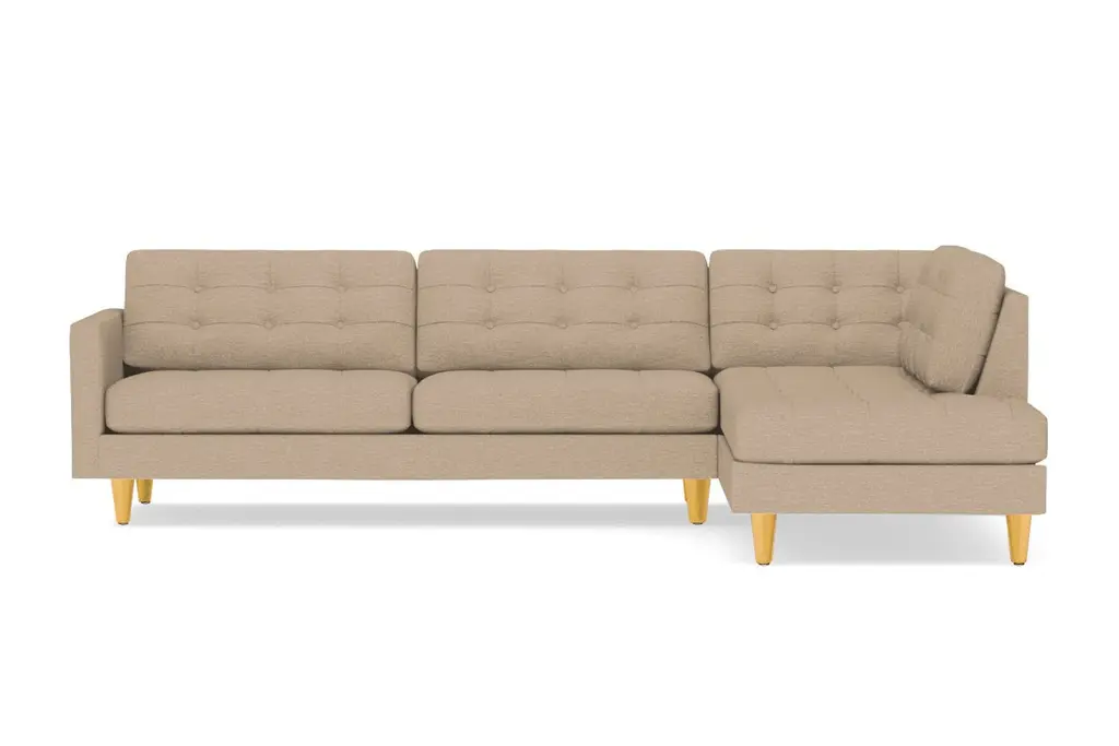 Looking for the perfect combination of comfort and style? Thanks to the Lexington Two-Piece Sectional Sofa, the search is over. The plush, button-tufted cushions are so inviting yet chic and the tapered dark wooden legs add to the midcentury modern mystique. This sofa is available in a selection of colors and fabrics, so whether you're looking for an easy-to-clean poly-nylon blend or a resilient ultra-tight weave (pictured), you'll find the perfect upholstery and color to suit your taste. And if you can't decide, we're more than happy to send you complimentary swatches. This sectional was made in the United States and features a limited lifetime warranty. We offer a 100-percent satisfaction guarantee. Totally hip and mod, the Lexington Collection is a fantastically stylish, contemporary take on a classic design. The button tufted cushioning and unique wooden legs give it a mid-century modern look.