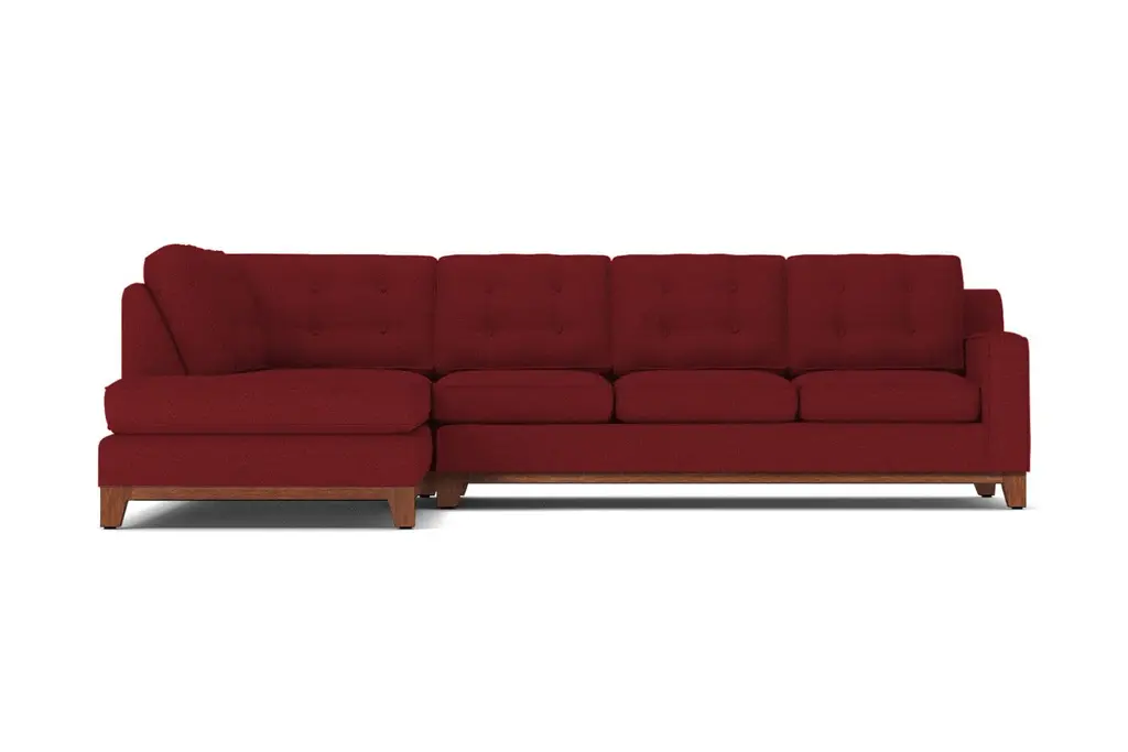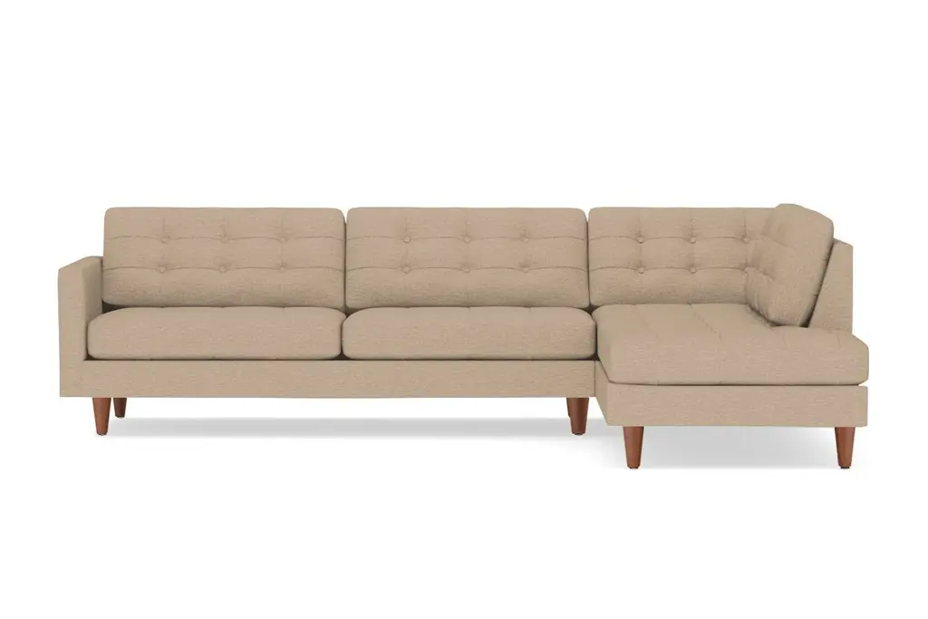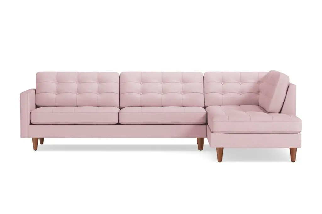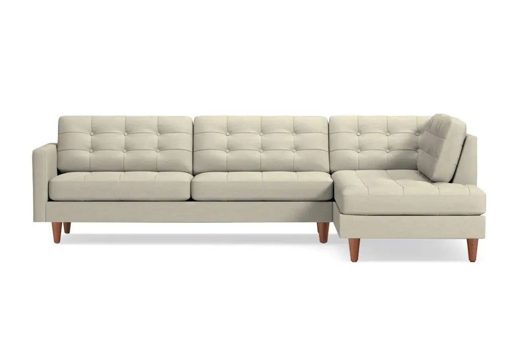 Looking for the perfect combination of comfort and style? Thanks to the Lexington Two-Piece Sectional Sofa, the search is over. The plush, button-tufted cushions are so inviting yet chic and the tapered dark wooden legs add to the midcentury modern mystique. This sofa is available in a selection of colors and fabrics, so whether you're looking for an easy-to-clean poly-nylon blend or a resilient ultra-tight weave (pictured), you'll find the perfect upholstery and color to suit your taste. And if you can't decide, we're more than happy to send you complimentary swatches. This sectional was made in the United States and features a limited lifetime warranty. We offer a 100-percent satisfaction guarantee. Totally hip and mod, the Lexington Collection is a fantastically stylish, contemporary take on a classic design. The button tufted cushioning and unique wooden legs give it a mid-century modern look.