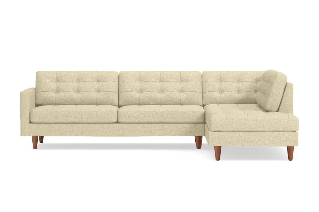 Looking for the perfect combination of comfort and style? Thanks to the Lexington Two-Piece Sectional Sofa, the search is over. The plush, button-tufted cushions are so inviting yet chic and the tapered dark wooden legs add to the midcentury modern mystique. This sofa is available in a selection of colors and fabrics, so whether you're looking for an easy-to-clean poly-nylon blend or a resilient ultra-tight weave (pictured), you'll find the perfect upholstery and color to suit your taste. And if you can't decide, we're more than happy to send you complimentary swatches. This sectional was made in the United States and features a limited lifetime warranty. We offer a 100-percent satisfaction guarantee. Totally hip and mod, the Lexington Collection is a fantastically stylish, contemporary take on a classic design. The button tufted cushioning and unique wooden legs give it a mid-century modern look.