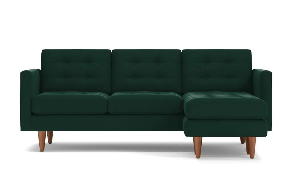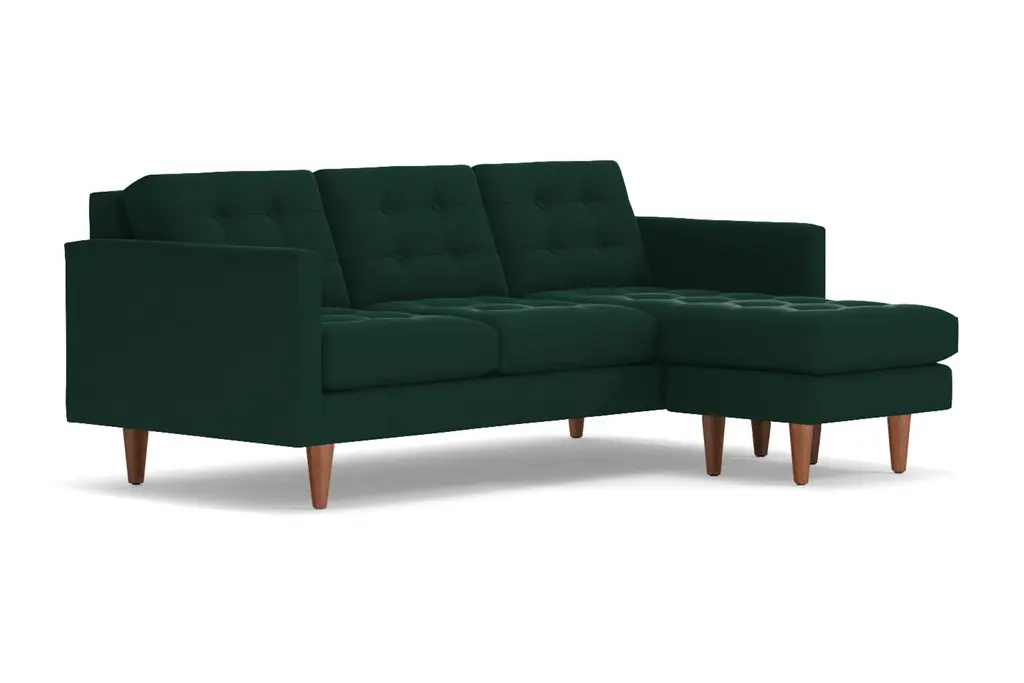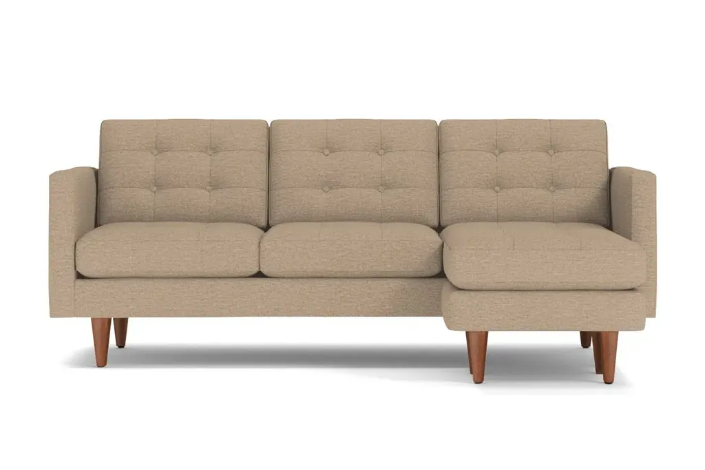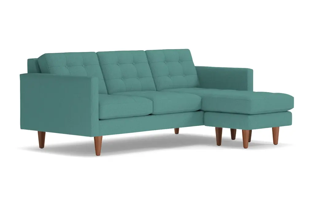 Lexington is known for American Revolutionary War battles, horse racing, barbeque festivals, wait, those are three different Lexington's. But we can tell you the entire Lexington Collection is known for being the hippest modern furniture. This reversible chaise sofa has high arms, button tufted cushions and a unique base that's designed to be comfortable while keeping its shape. You can own this hypoallergenic sofa in one of 25 different fabrics, whether you want a woven beach, chromium or chicago blue chaise sofa. And set the ottoman up on either the right or left side - we don't judge. Each Lexington reversible chaise sectional is custom-made in the U.S. with a limited lifetime warranty, so you can enjoy fantastic mid-century modern style whether you prefer lessons in war history or smoked brisket. Totally hip and mod, the Lexington Collection is a fantastically stylish, contemporary take on a classic design. The button tufted cushioning and unique wooden legs give it a mid-century modern look.