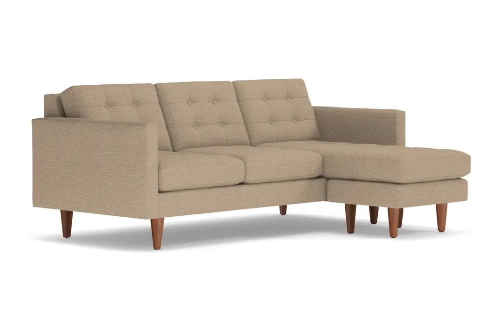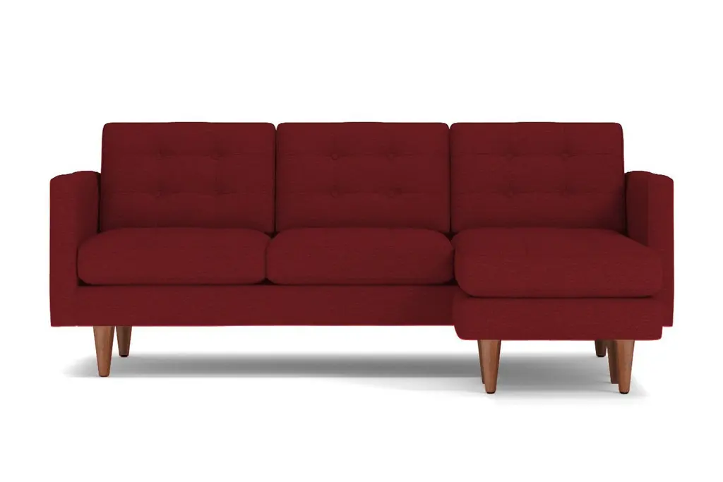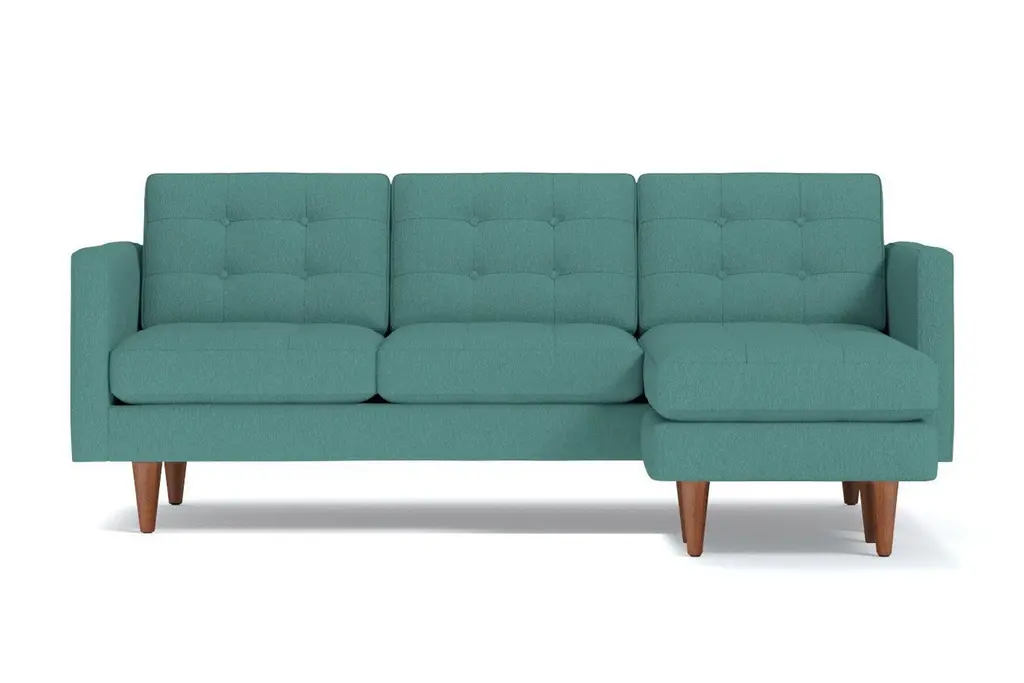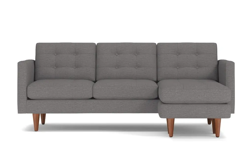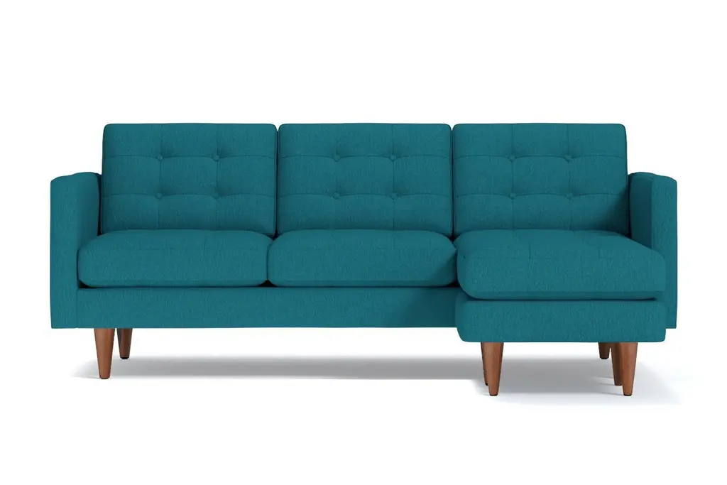 Lexington is known for American Revolutionary War battles, horse racing, barbeque festivals, wait, those are three different Lexington's. But we can tell you the entire Lexington Collection is known for being the hippest modern furniture. This reversible chaise sofa has high arms, button tufted cushions and a unique base that's designed to be comfortable while keeping its shape. You can own this hypoallergenic sofa in one of 25 different fabrics, whether you want a woven beach, chromium or chicago blue chaise sofa. And set the ottoman up on either the right or left side - we don't judge. Each Lexington reversible chaise sectional is custom-made in the U.S. with a limited lifetime warranty, so you can enjoy fantastic mid-century modern style whether you prefer lessons in war history or smoked brisket. Totally hip and mod, the Lexington Collection is a fantastically stylish, contemporary take on a classic design. The button tufted cushioning and unique wooden legs give it a mid-century modern look.