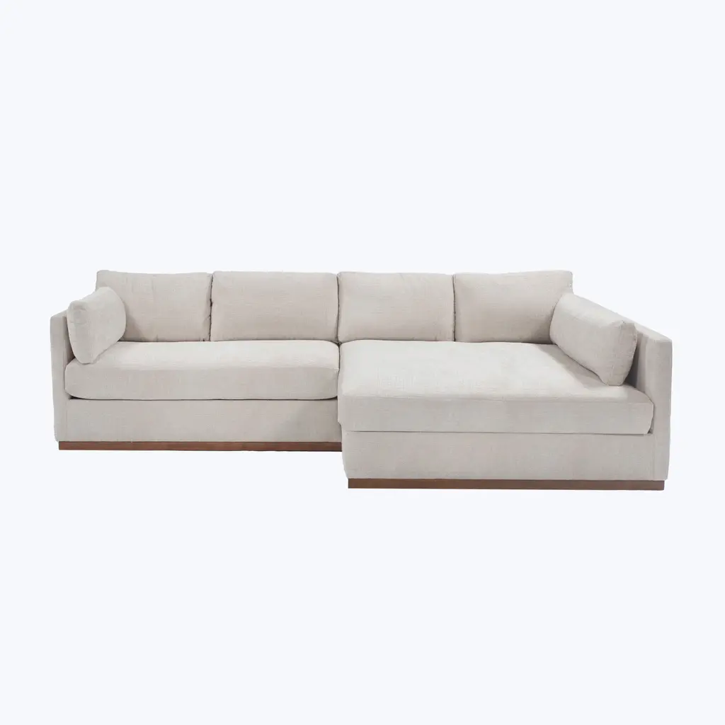 Discover the Lexington Sectional by Bond Street. Featuring an oversized chaise, the Lexington is designed for stretching out, curling up, and truly lounging. The plinth base gives this inviting sectional a grounded, architectural presence, while its crisp, structural silhouette stands in beautiful balance to the Lexington’s sink-in comfort. A perfect piece for movie nights and lazy afternoons. Handcrafted in sustainable FSC®-certified wood and upholstered in durable performance fabric. The Lexington Sectional is made in the USA exclusively for abc and can be customized in-store in a wide range of colors.