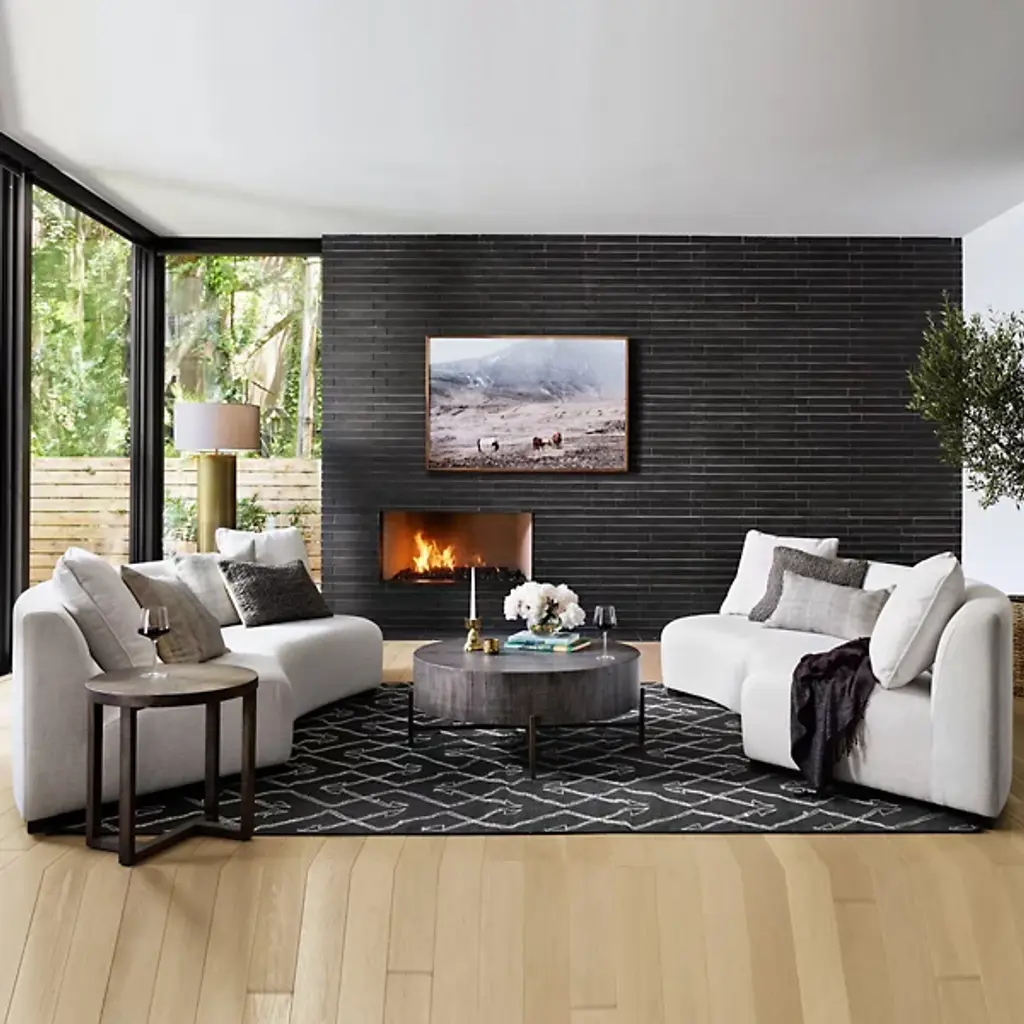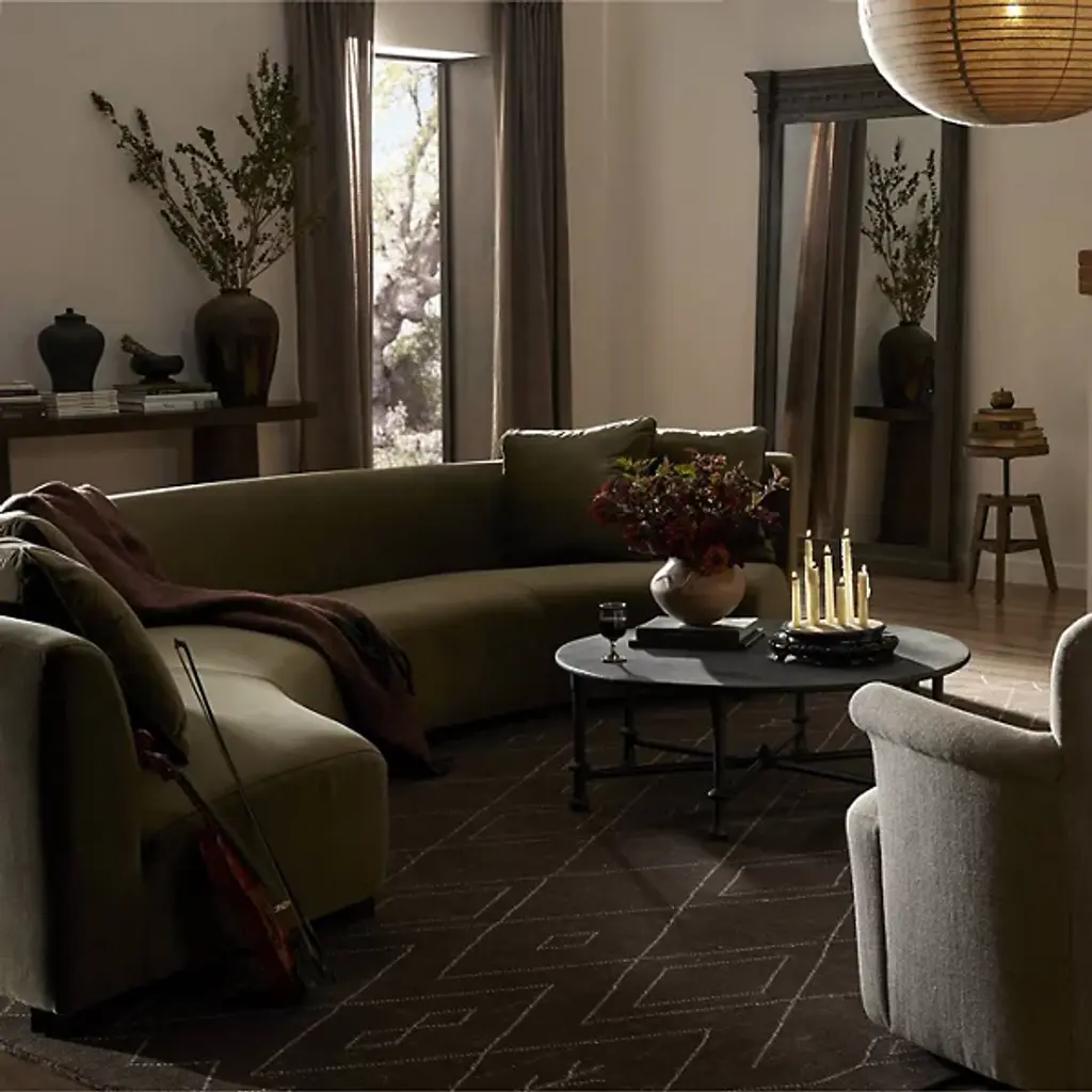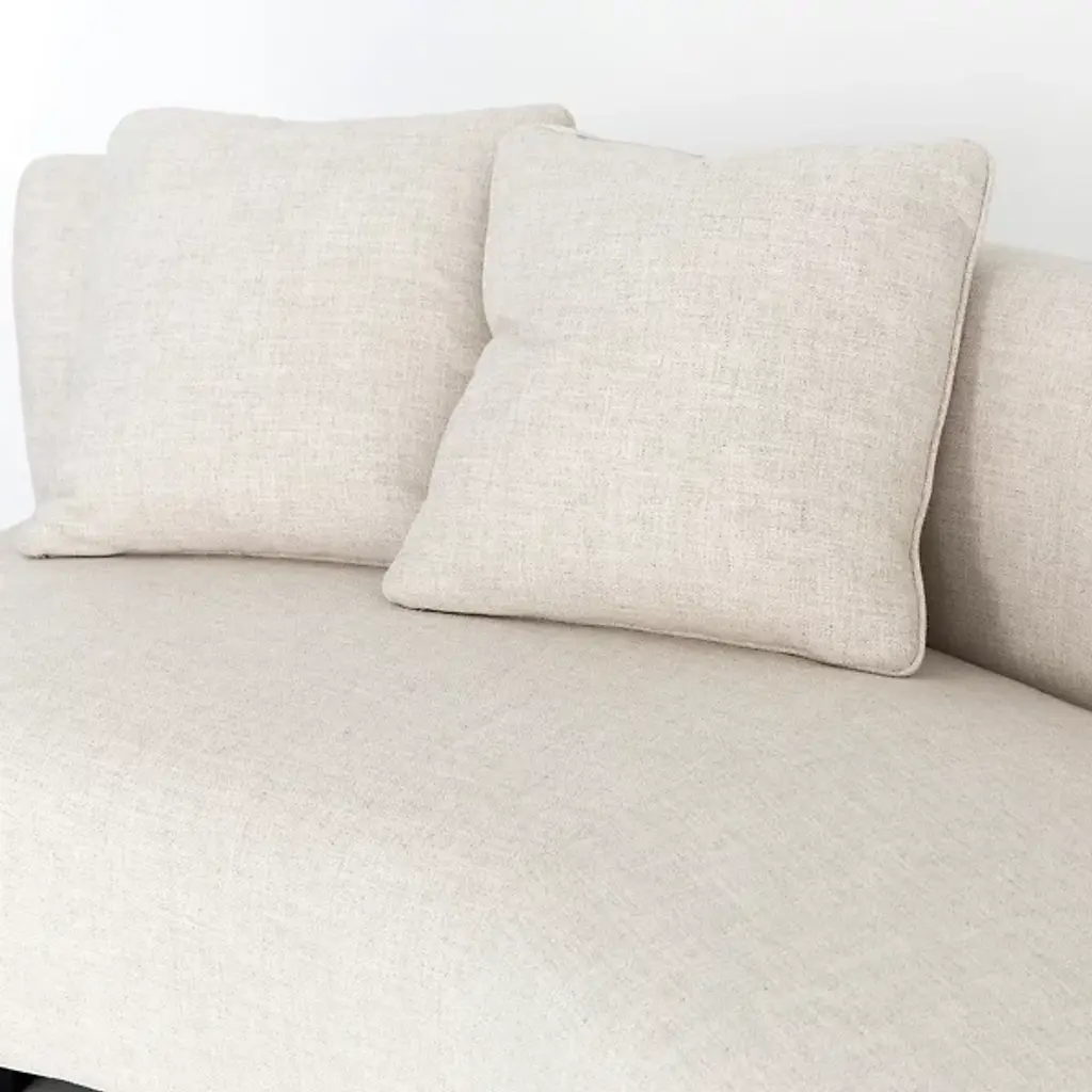 The Liam Sectional Sofa from Four Hands draws upon Italian design influences in its curved form. The textile blend of viscose, polyester, and flax/linen offers durability for daily use, while the solid birch and poplar plywood structure ensures lasting stability. The modular nature of the design permits multiple arrangements to suit different spaces. The interior composition of polyurethane foam and polyester fiber delivers consistent comfort across the seating surface. The subtle curves of each section create a continuous line when assembled.