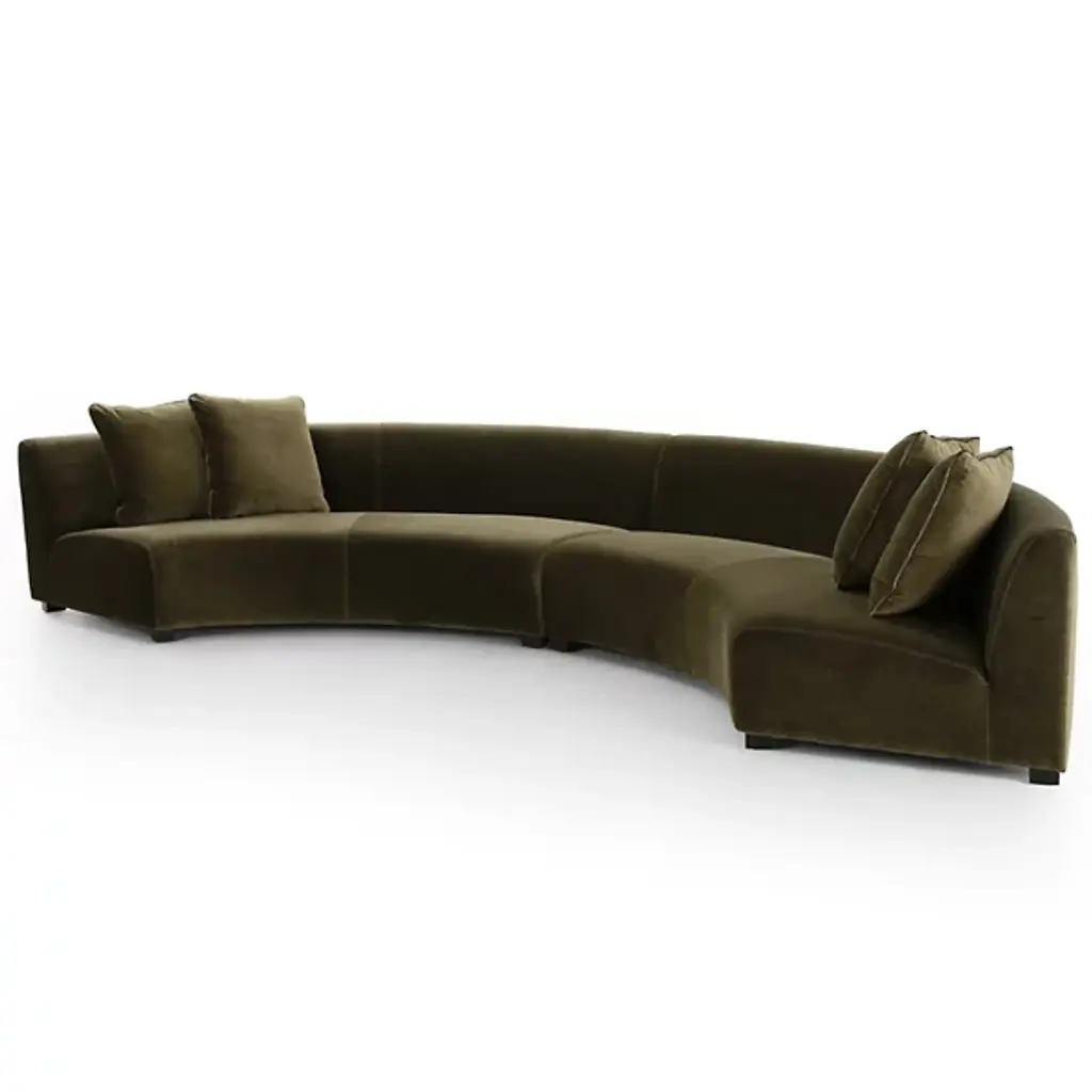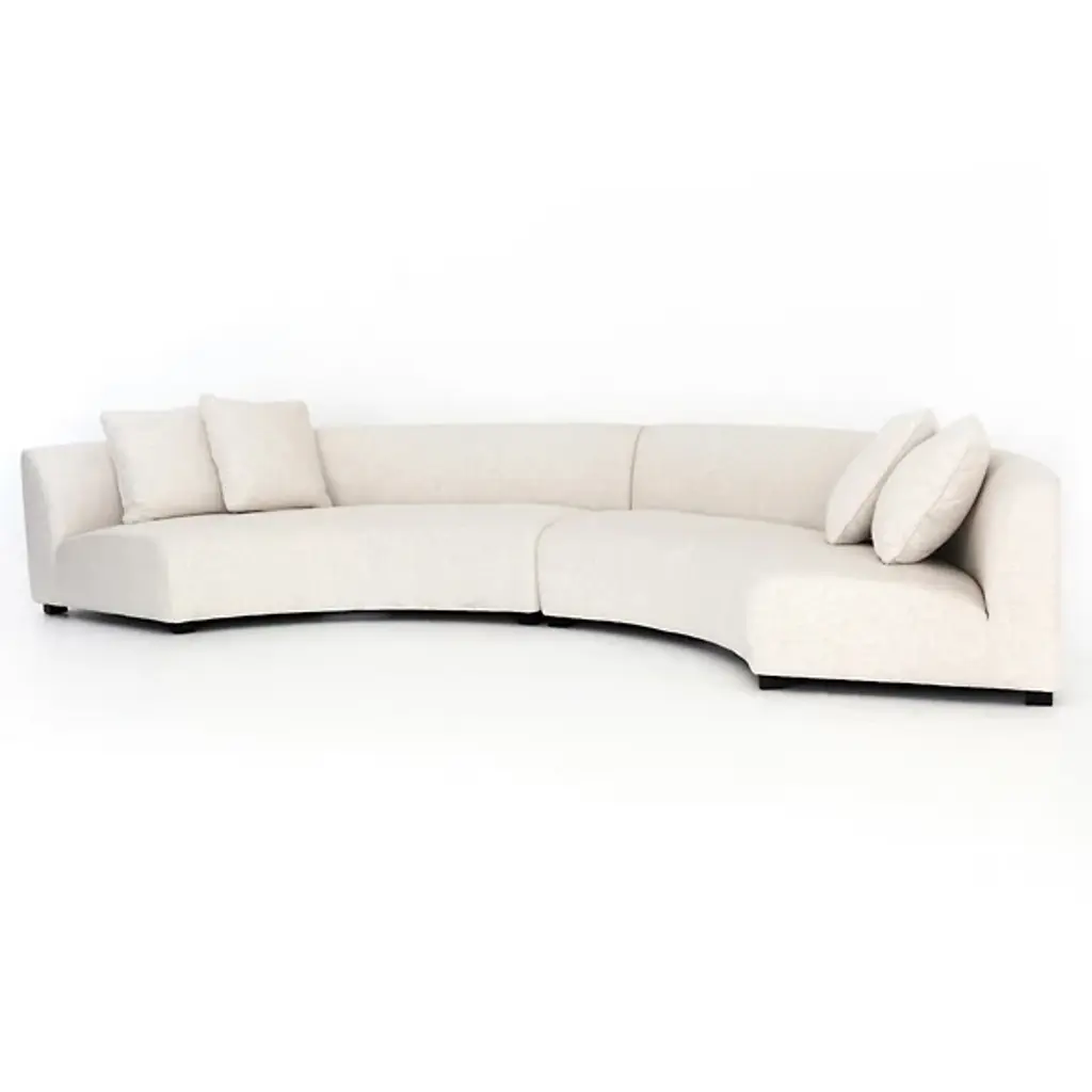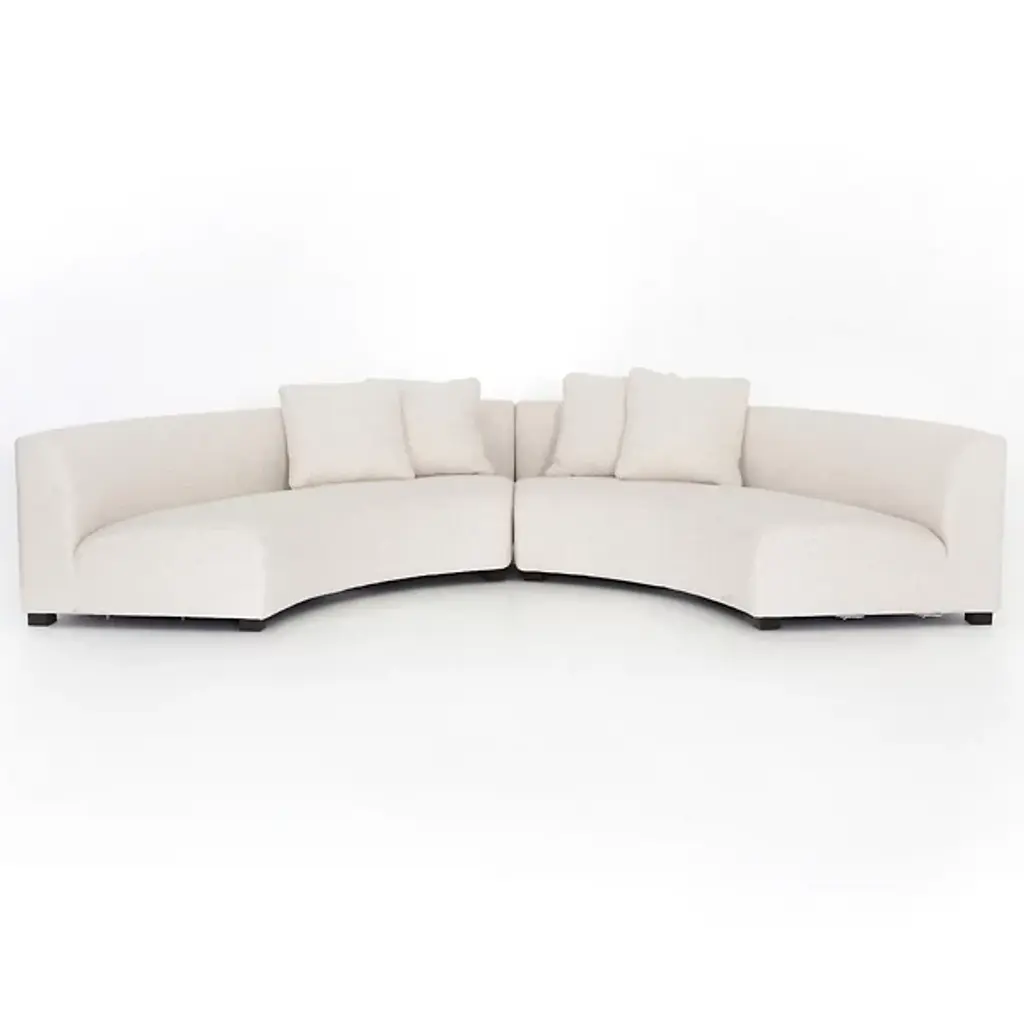 The Liam Sectional Sofa from Four Hands draws upon Italian design influences in its curved form. The textile blend of viscose, polyester, and flax/linen offers durability for daily use, while the solid birch and poplar plywood structure ensures lasting stability. The modular nature of the design permits multiple arrangements to suit different spaces. The interior composition of polyurethane foam and polyester fiber delivers consistent comfort across the seating surface. The subtle curves of each section create a continuous line when assembled.