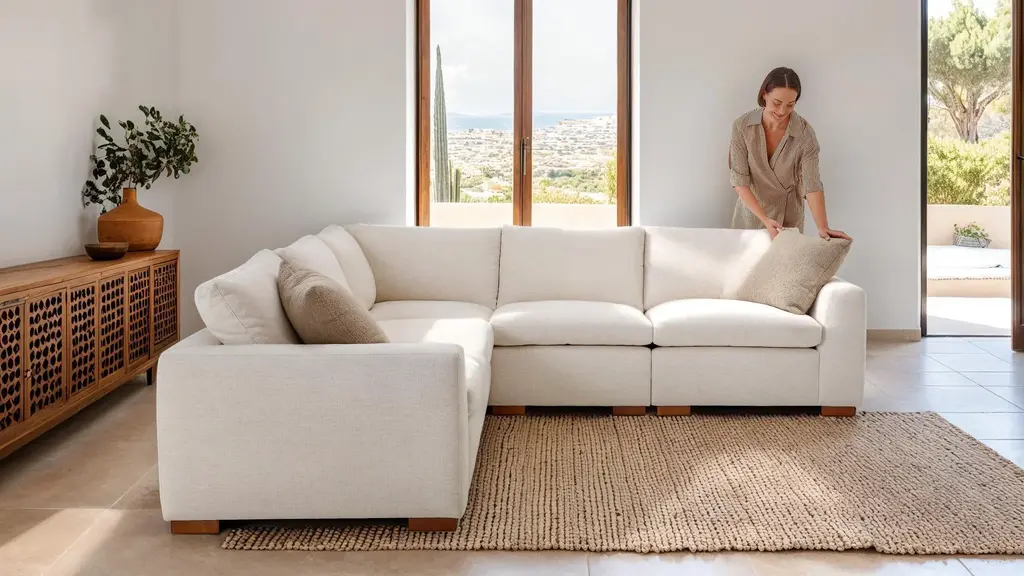 DESIGN There's nothing easier than slipping into our Like Butter Collection. Built for lounging, the Like Butter Small Sectional features a low back and high arm for melt-in comfort. Available in more than 125 fabrics and leathers so you can create the perfect sectional for your space. The Like Butter Modular Collection gives you the flexibility to select your pieces and arrange (and re-arrange!) them effortlessly anytime. Crafted for lasting comfort and personalized style, the Like Butter Small Sectional features the highest quality, American-made materials backed by our limited lifetime warranty. FEATURES Solid Foundation: Our frames are constructed from precision-cut, FSC-certified engineered wood for unmatched strength and stability, featuring reinforced, interlocking joinery for added durability. Sink-In Coziness Like Butter cushions are made from hypo-allergenic and cruelty-free down alternative fill wrapped around a high-quality thin foam core - giving you a super cozy, sink-in feel (trust us, you'll never want to leave). Regular fluffing will keep your sectional looking perfect. Supportive Webbing Suspension: Designed to maximize comfort, our premium webbing system provides a resilient foundation. Customizable Upholstery: Choose from a vast selection of durable premium and performance fabrics and genuine Italian leather to personalize your Like Butter Modular Sectional's look.