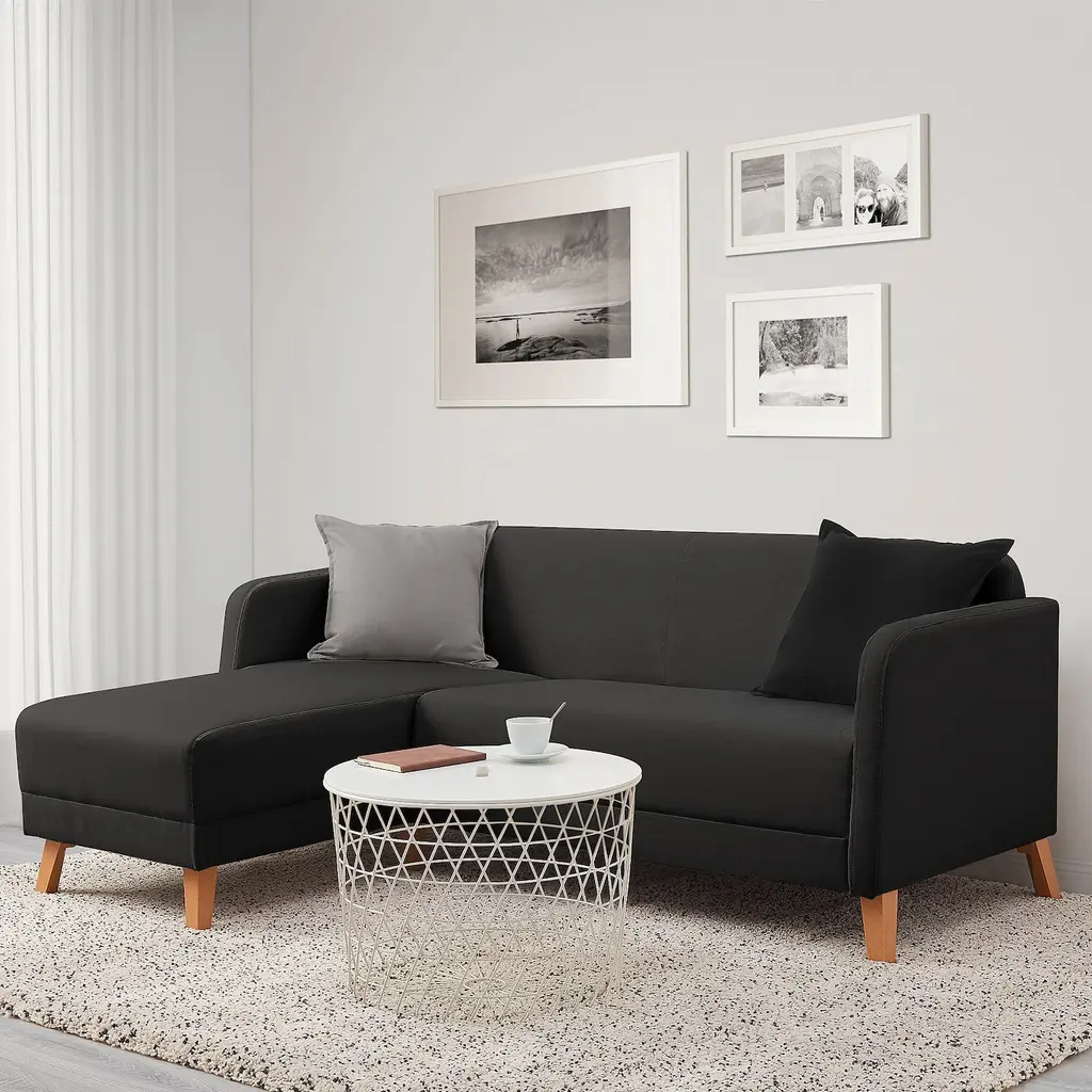 LINANÄS Sofa - with chaise/Vissle dark gray. This cover is made from Vissle fabric in polyester, which is dope-dyed. It’s a durable material with a smooth weave and a nice two-tone effect. 10 year Limited warranty. Read about the terms in the warranty brochure. Stationary cover.