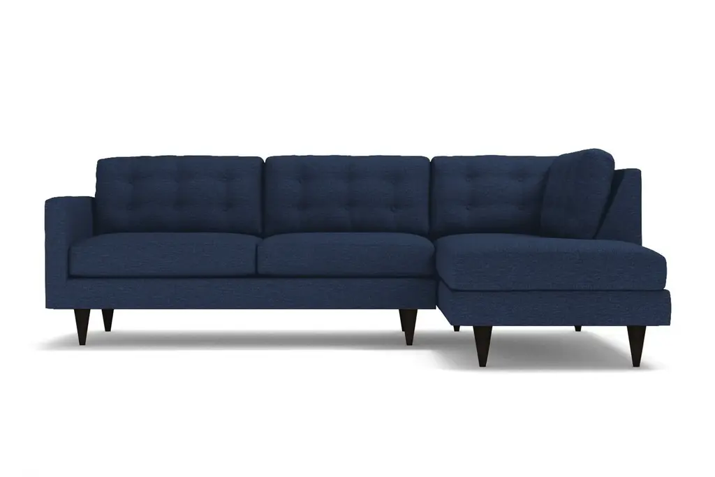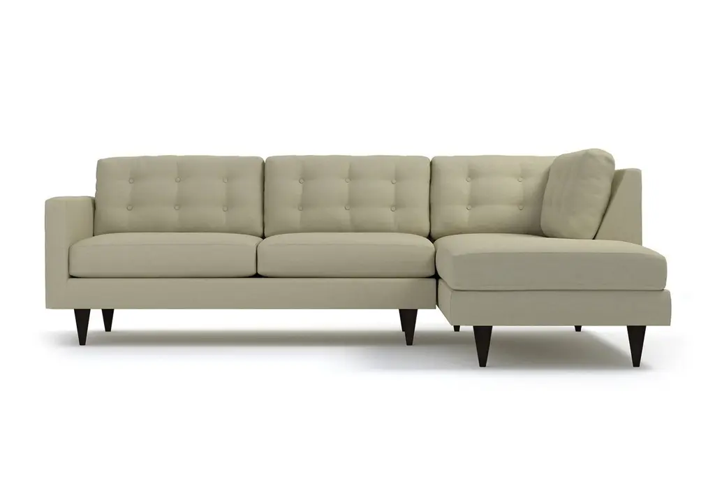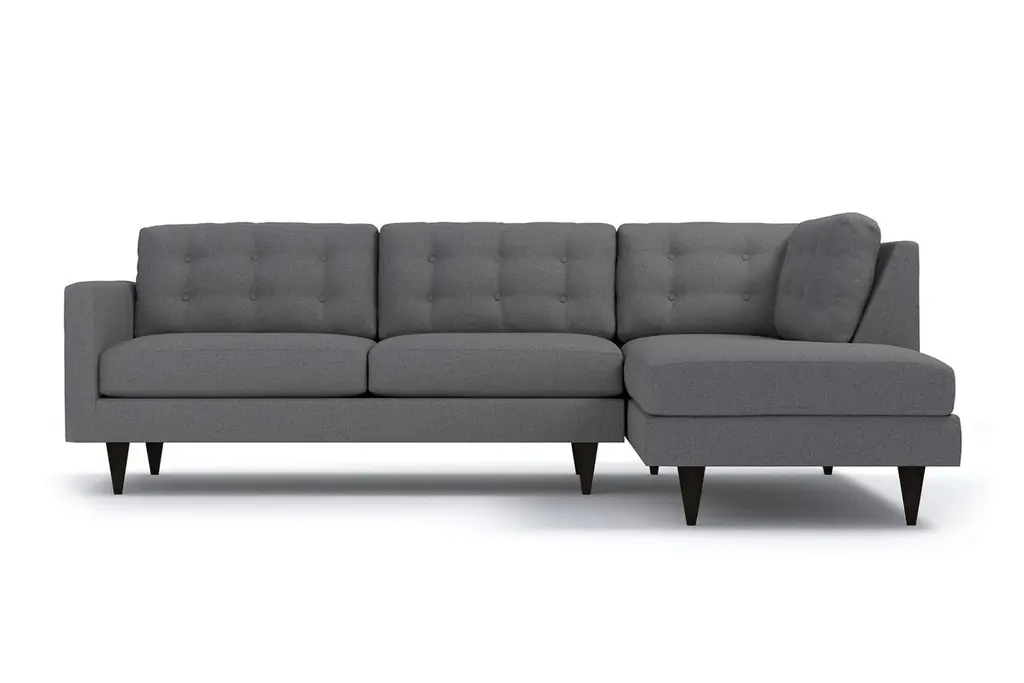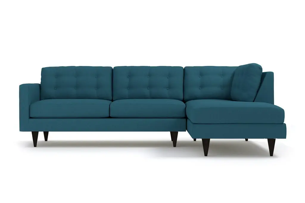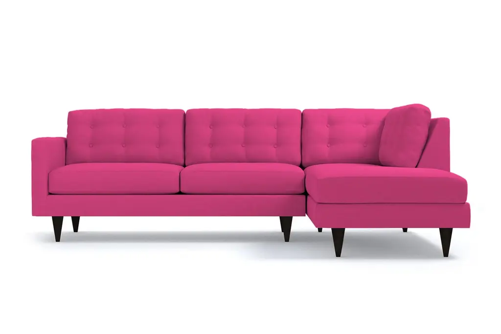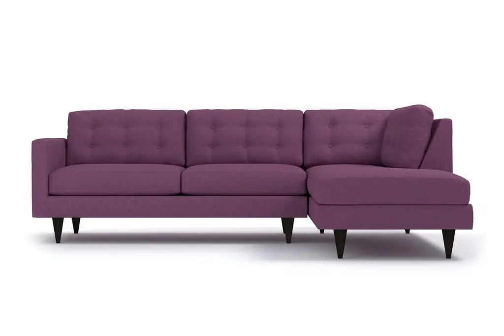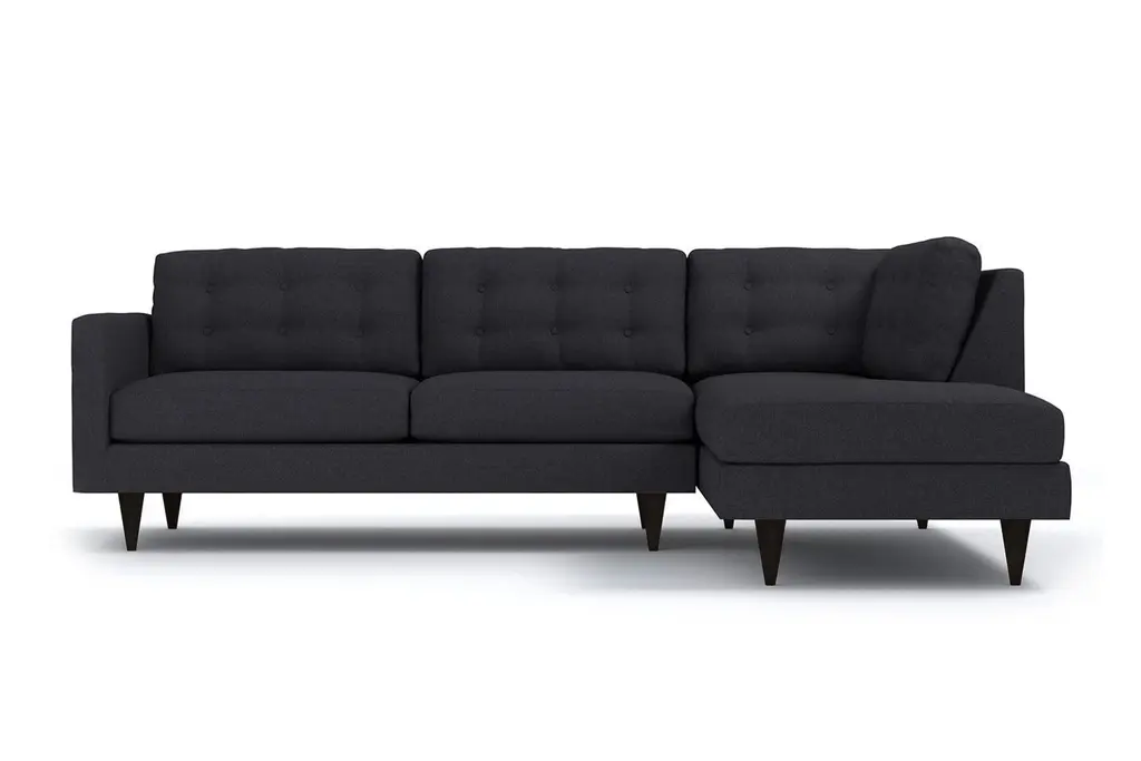 This sophisticated two-piece sectional evokes the style of old Hollywood glamour with its button-tufted back cushions and tapered wooden legs. Part of famed interior designer Kyle Schuneman's line and exclusively sold at Apt2B, the Logan is luxurious comfort at its very best. Perfect for entertaining guests or stretching out for a movie marathon, this versatile piece is both stylish and cozy. The Logan is fully customizable with your choice of colors and fabrics, so whether you're looking for smooth microfiber or a high-piled upholstery, you'll find it at Apt2B. If you're not sure about the color or fabric, just ask and we'll send you a few swatches to help you decide. This sofa is made in the United States and comes with a lifetime guarantee. What are you waiting for? Looking for a two-piece sectional that radiates modern style? The Logan from Kyle Schuneman is the perfect choice. With classic button-tufted back cushions and an oversized chaise for optimum relaxation, it not only looks great in your living room, it's comfortable too! We offer an array of color choices so you can customize the Logan to match your existing decor. Whether you're looking for a blue sectional sofa or a delicate shade of seafoam, you'll find it. Apt2B specializes and apartment furniture that embodies the modern style. We love the Logan because it's made right here in the United States and it comes with a limited lifetime warranty. Our furniture comes with a 100-percent satisfaction guarantee.