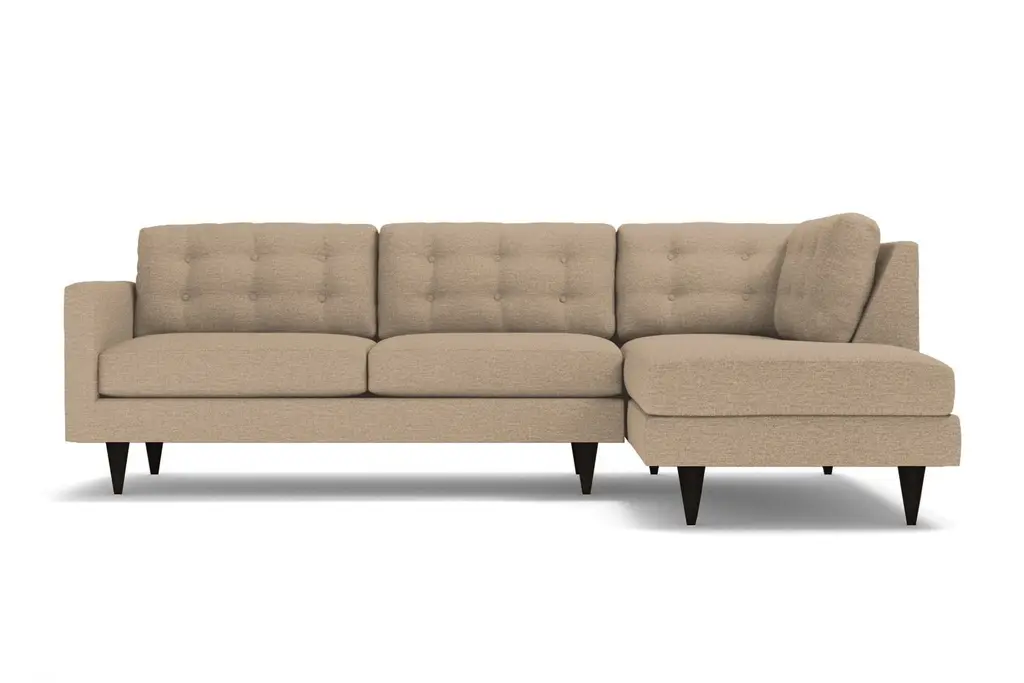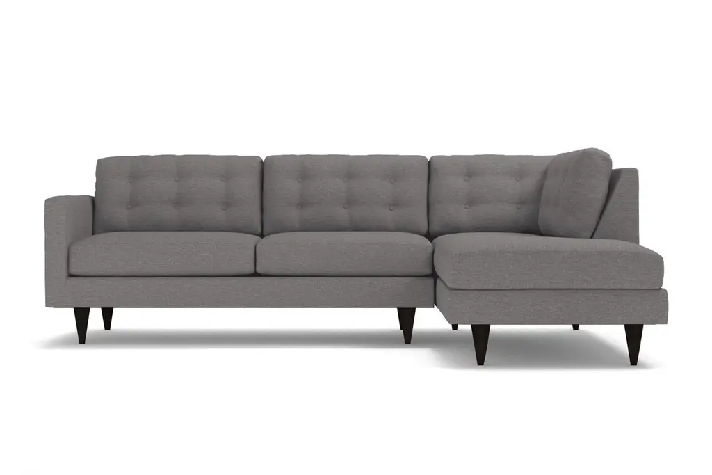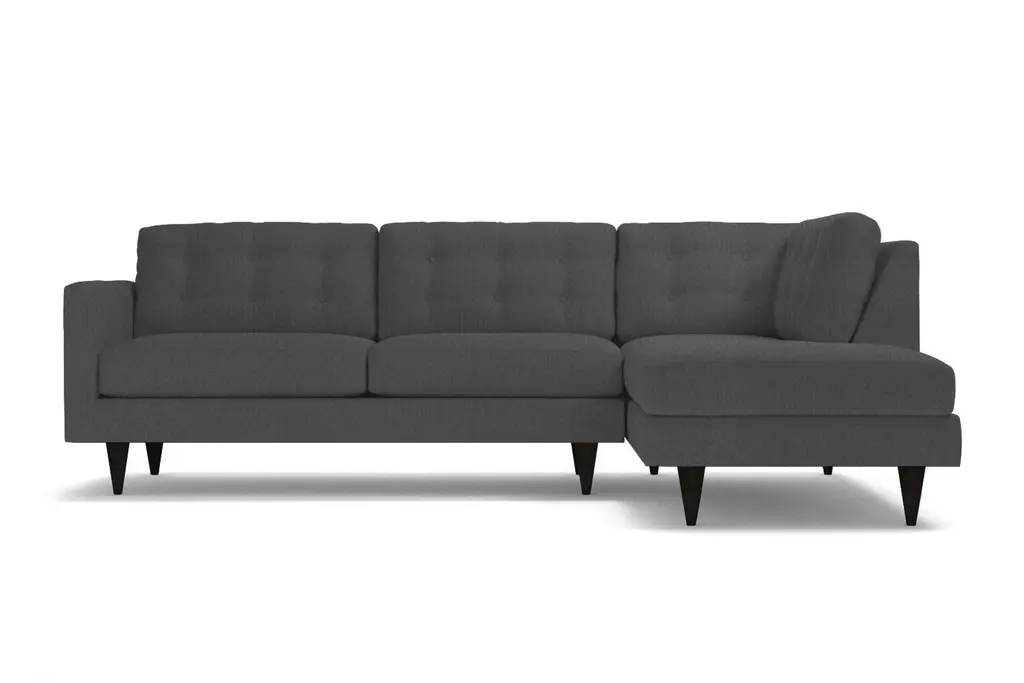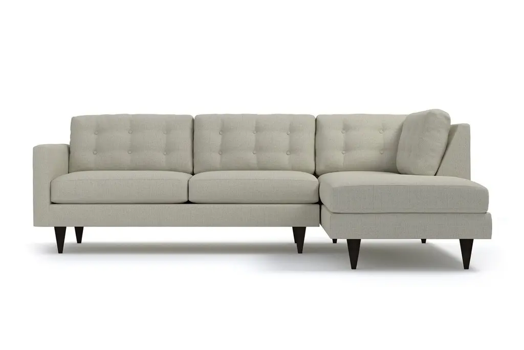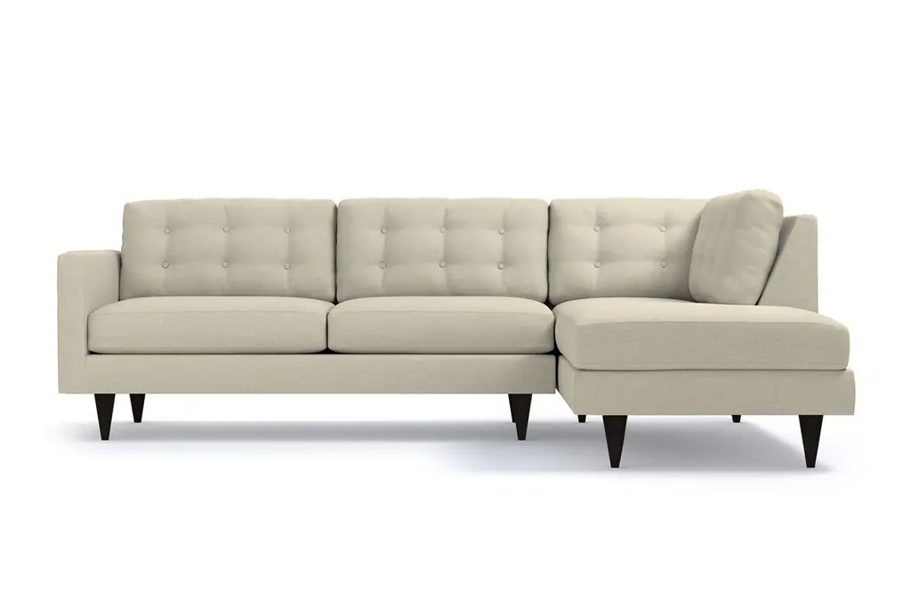This sophisticated two-piece sectional evokes the style of old Hollywood glamour with its button-tufted back cushions and tapered wooden legs. Part of famed interior designer Kyle Schuneman's line and exclusively sold at Apt2B, the Logan is luxurious comfort at its very best. Perfect for entertaining guests or stretching out for a movie marathon, this versatile piece is both stylish and cozy. The Logan is fully customizable with your choice of colors and fabrics, so whether you're looking for smooth microfiber or a high-piled upholstery, you'll find it at Apt2B. If you're not sure about the color or fabric, just ask and we'll send you a few swatches to help you decide. This sofa is made in the United States and comes with a lifetime guarantee. What are you waiting for? Looking for a two-piece sectional that radiates modern style? The Logan from Kyle Schuneman is the perfect choice. With classic button-tufted back cushions and an oversized chaise for optimum relaxation, it not only looks great in your living room, it's comfortable too! We offer an array of color choices so you can customize the Logan to match your existing decor. Whether you're looking for a blue sectional sofa or a delicate shade of seafoam, you'll find it. Apt2B specializes and apartment furniture that embodies the modern style. We love the Logan because it's made right here in the United States and it comes with a limited lifetime warranty. Our furniture comes with a 100-percent satisfaction guarantee.